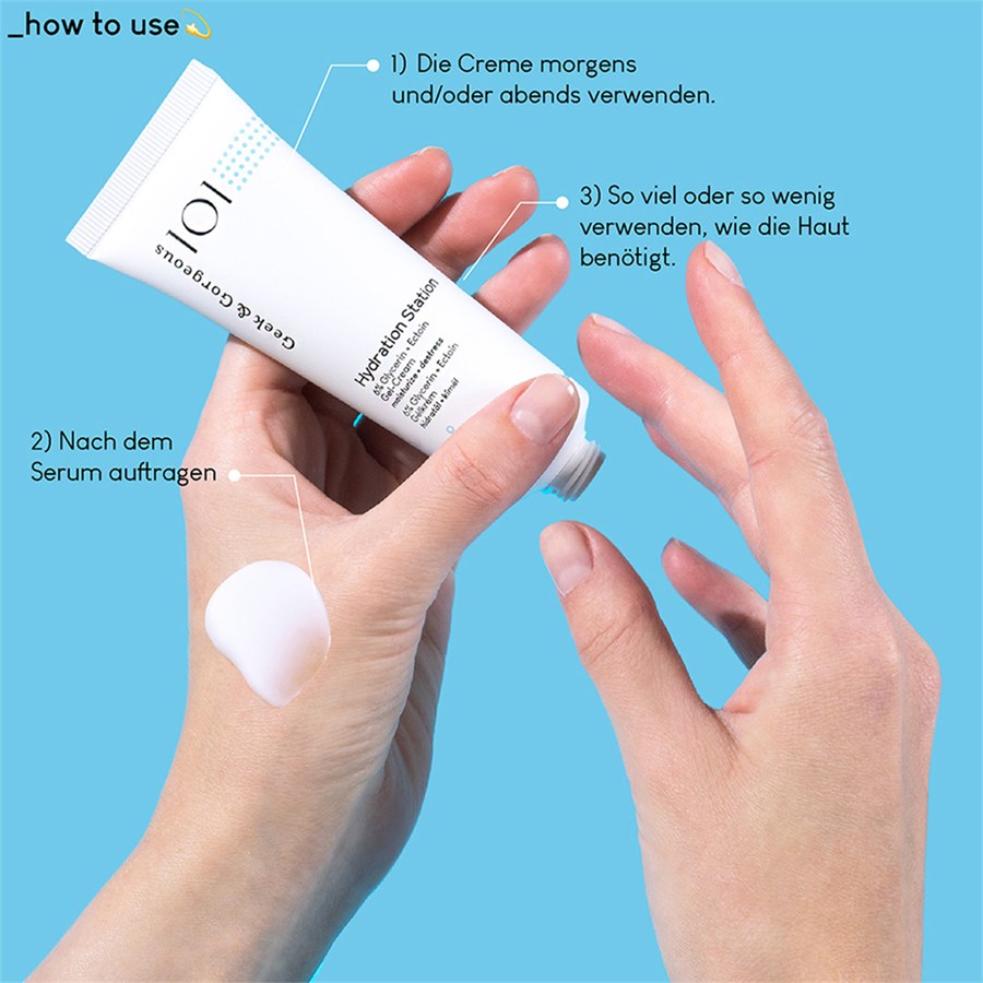 Применяйте Hydration Station утром и/или вечером после сывороток. Используйте столько, сколько необходимо вашей коже.