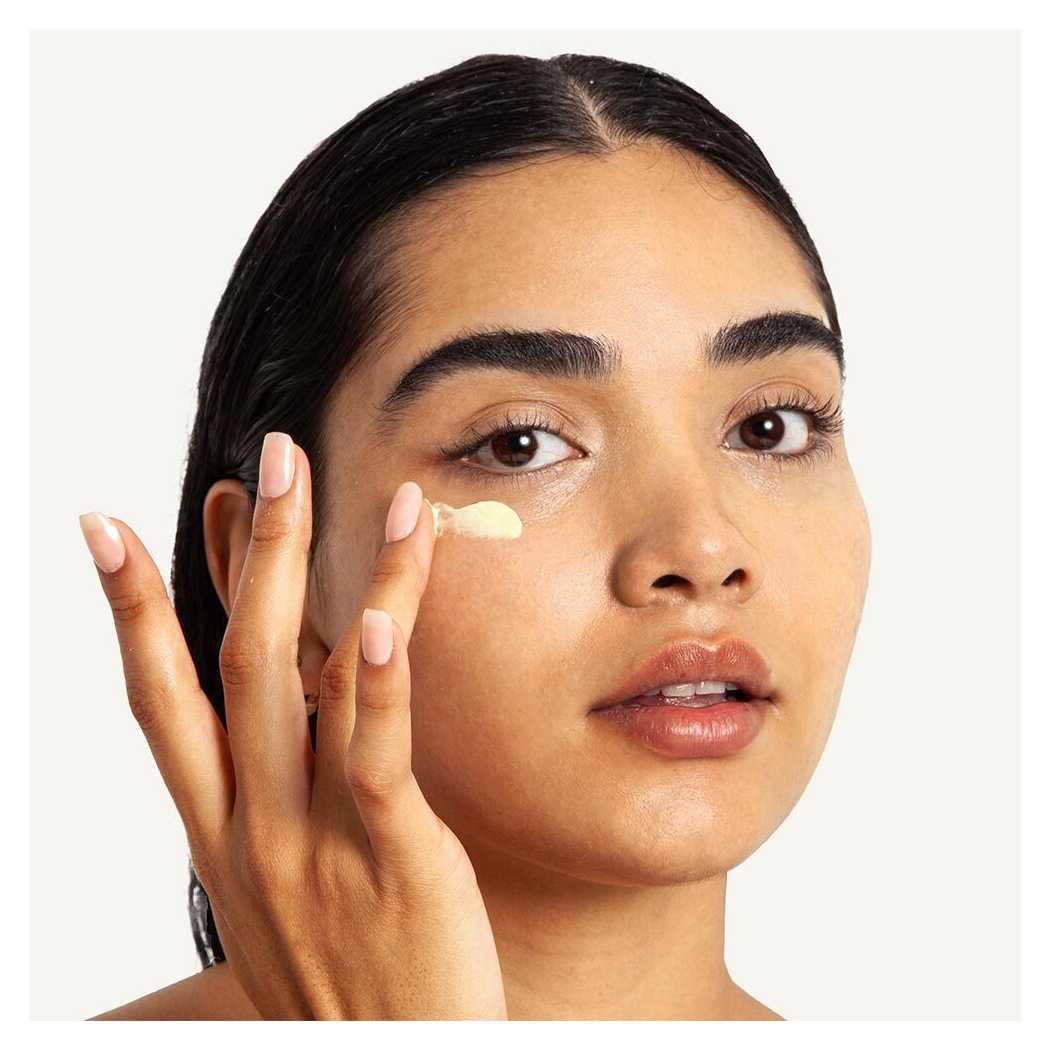 Безымянным пальцем аккуратно нанесите количество средства размером с горошину на кожу вокруг глаз, прежде чем наносить сыворотку и увлажняющий крем.