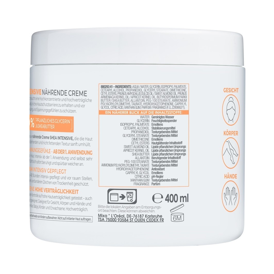 Интенсивный питательный крем с маслом ши обеспечивает насыщенный уход за лицом, телом и руками. Нанесите на пораженные участки кожи и аккуратно помассируйте. Повторяйте несколько раз в день по мере необходимости.