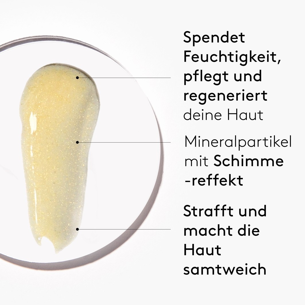 Состав: AQUA (ВОДА), ДИКАПРИЛИЛОВЫЙ ЭФИР, ГЛИЦЕРИН, МАСЛО ШИ (BUTYROSPERMUM PARKII), КОКОС-КАПРИЛАТ/КАПРАТ, БЕТАИН, СТЕАРИЛОВЫЙ СПИРТ, ЛАУРИЛГЛЮКОЗИД, ПОЛИГЛИЦЕРИЛ-2 ДИПОЛИГИДРОКСИСТЕАРАТ, МАСЛО СЕМЯН ЖОЖОБА (SIMMONDSIA CHINENSIS), МАСЛО КОКОСА (COCOS NUCIFERA), БЕНЗИЛОВЫЙ СПИРТ, КСАНТАНОВАЯ КАМЕДЬ, ТРЕГАЛОЗА, СЛЮДА, ПАРФЮМЕРНАЯ КОМПОЗИЦИЯ (АРОМАТИЗАЦИЯ), ДИОКСИД ТИТАНА (CI 77891), ДЕГИДРОУКСУСНАЯ КИСЛОТА, ОКСИДЫ ЖЕЛЕЗА (CI 77491), Масло сои (Glycine Soja), бензойная кислота, гидроксид натрия, сорбиновая кислота, токоферол, лимонная кислота, бета-ситостерол, сквален. Ингредиенты из органического земледелия / Ingredientes procedentes del cultivo ecológico 100% Natural Parfum / Perfume 100% Natural