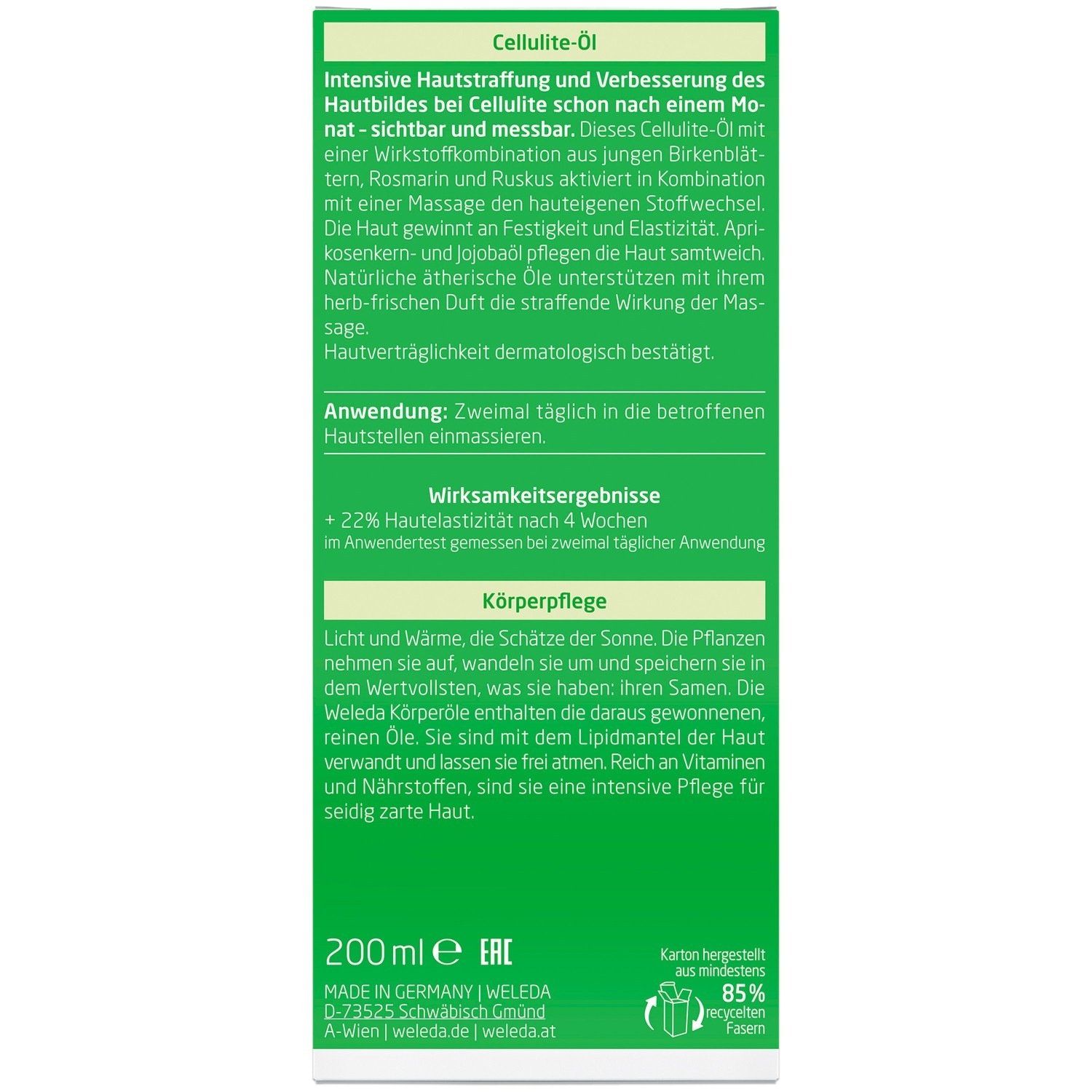 Масло для тела birke cellulite-öl Weleda, объем 200 мл