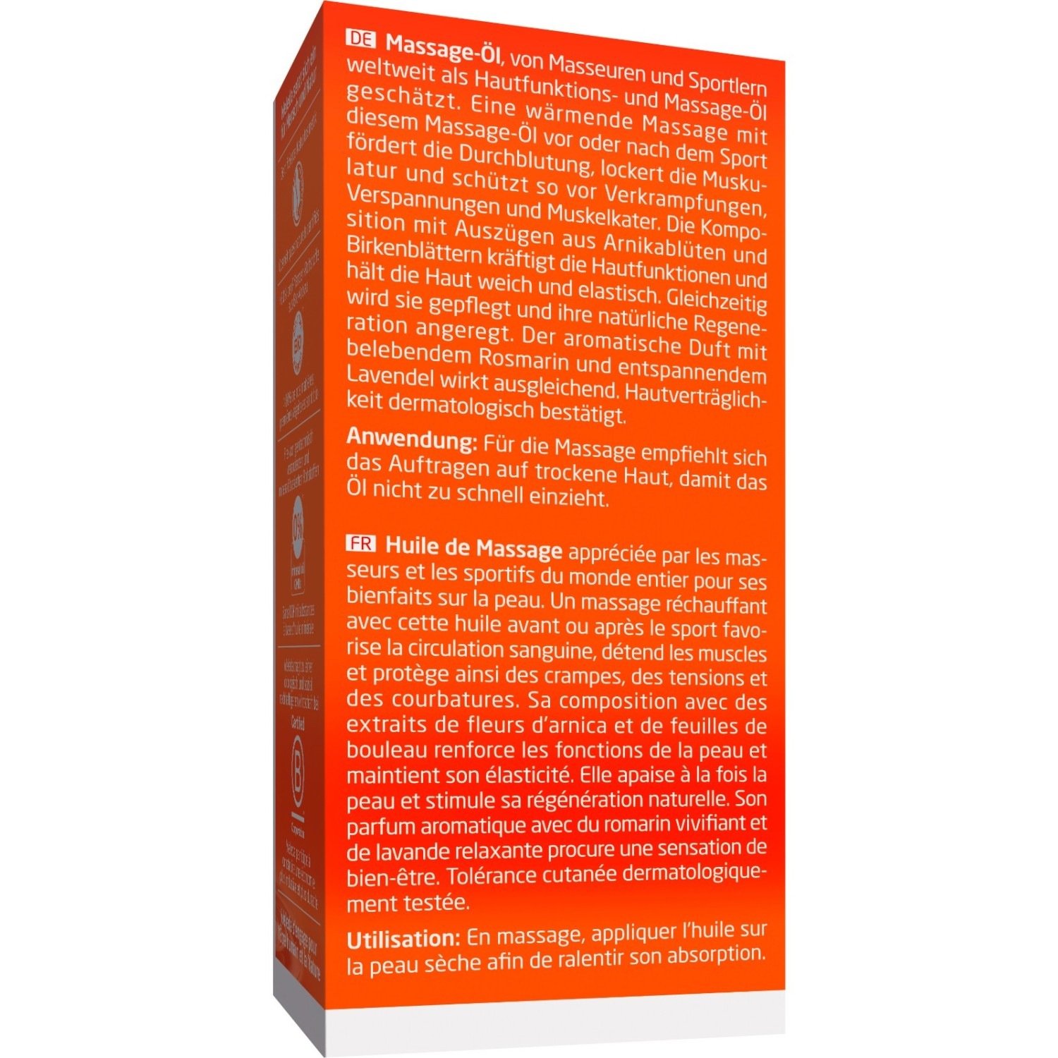 Состав: Масло семян подсолнечника (Helianthus Annuus), масло плодов оливы европейской (Olea Europaea), ароматизатор (парфюмерная композиция), экстракт цветков арники горной (Arnica Montana), экстракт листьев березы белой (Betula Alba), лимонен, линалоол, гераниол, кумарин