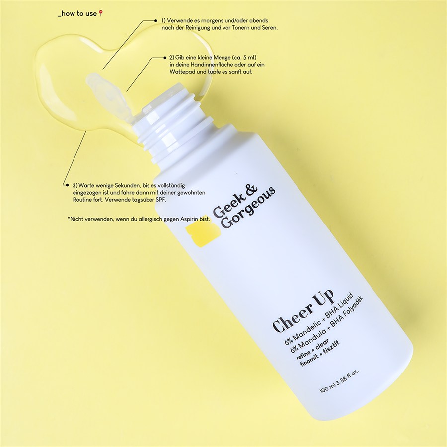 Сыворотка Cheer Up - идеальный первый шаг после очищения кожи. Используйте ее в качестве тоника, либо с помощью ватного диска, либо нанеся ее на руки и похлопывая по коже. Избегайте области вокруг глаз! В зависимости от переносимости вашей кожи, Cheer Up можно использовать через день или два раза в день. Для большинства типов кожи идеальным вариантом будет один раз в день. Подождите, пока она впитается, а затем нанесите ваши любимые сыворотки и увлажняющие средства.