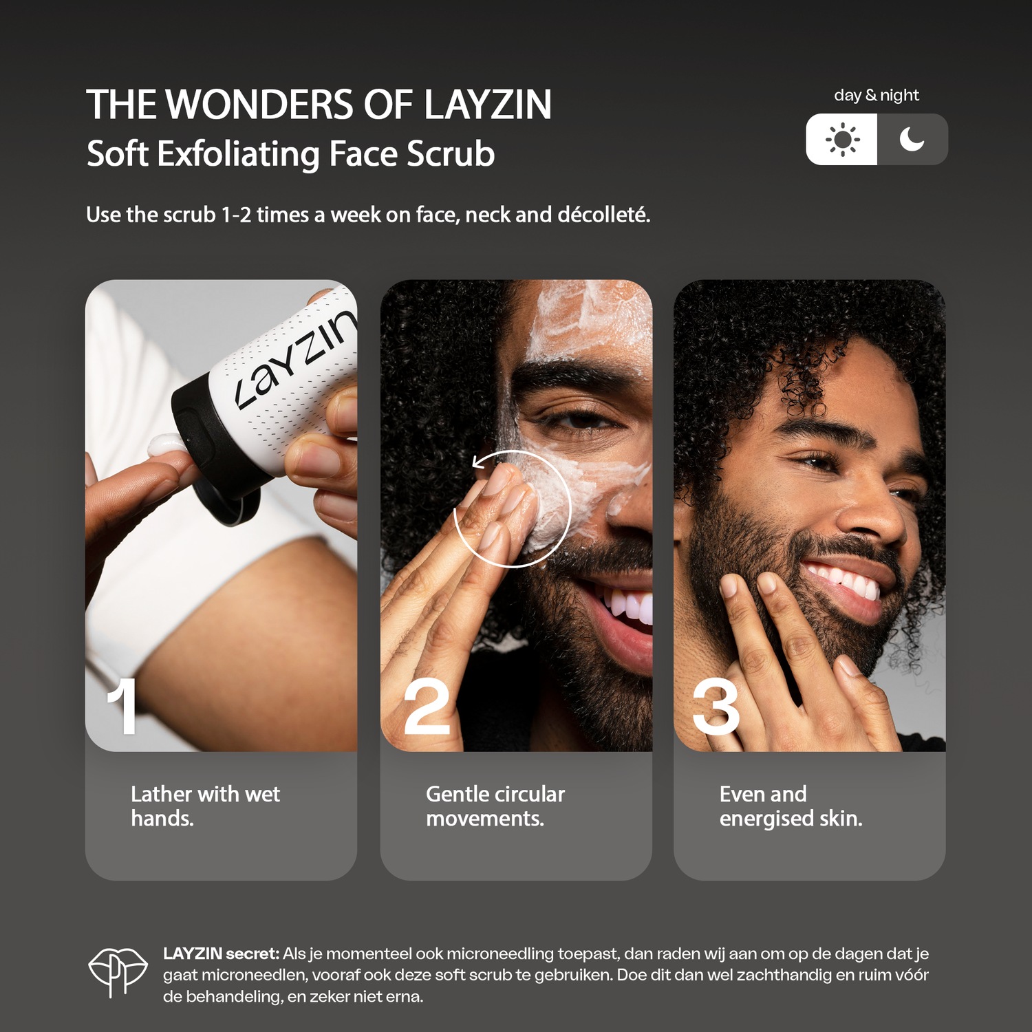 Используйте этот скраб для лица один или два раза в неделю. Нанесите небольшое количество на влажные руки и слегка потрите до образования мягкой пены. Затем аккуратно помассируйте скрабом кожу круговыми движениями.