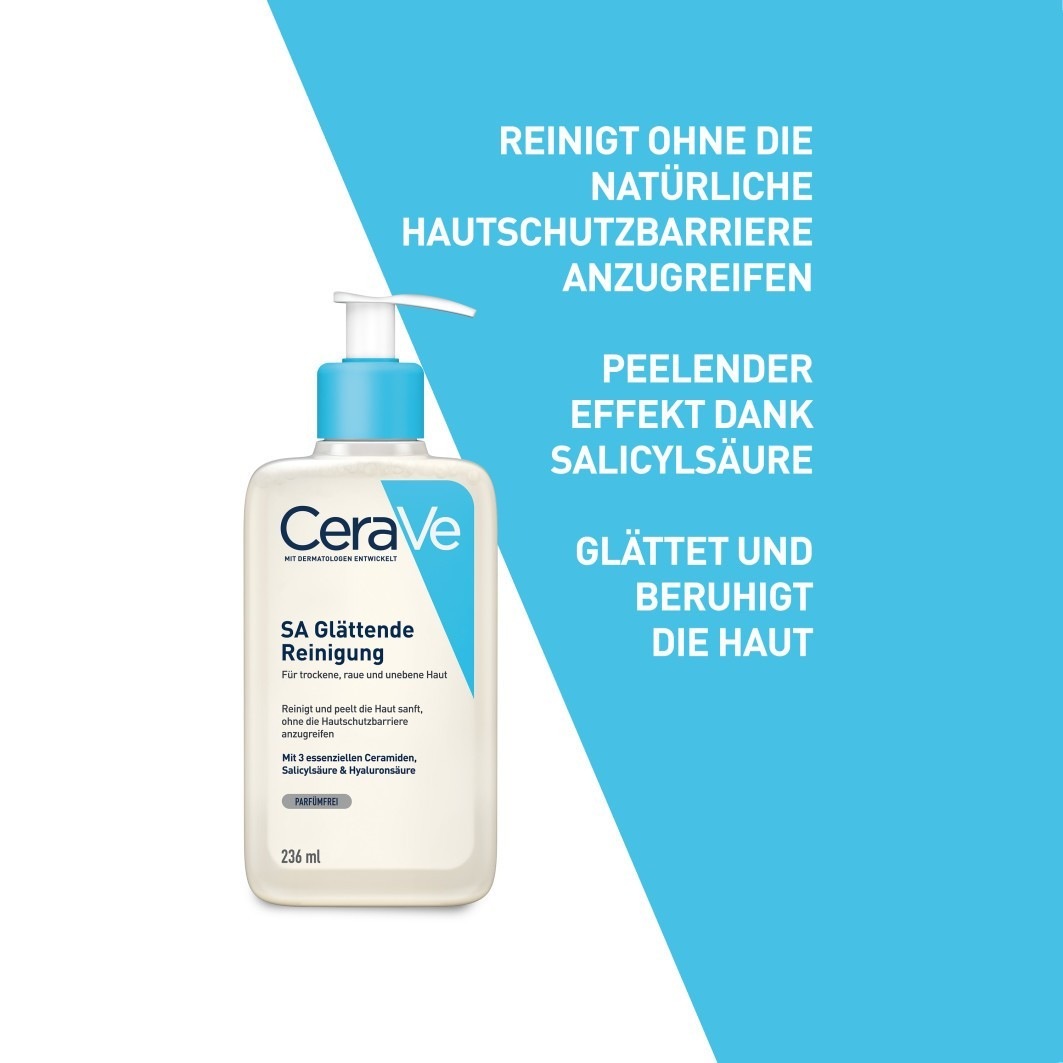 Благодаря своей мягкой формуле, очищающее средство CeraVe SA Smoothing Cleanser предназначено для ежедневного использования и подходит для тела и лица.