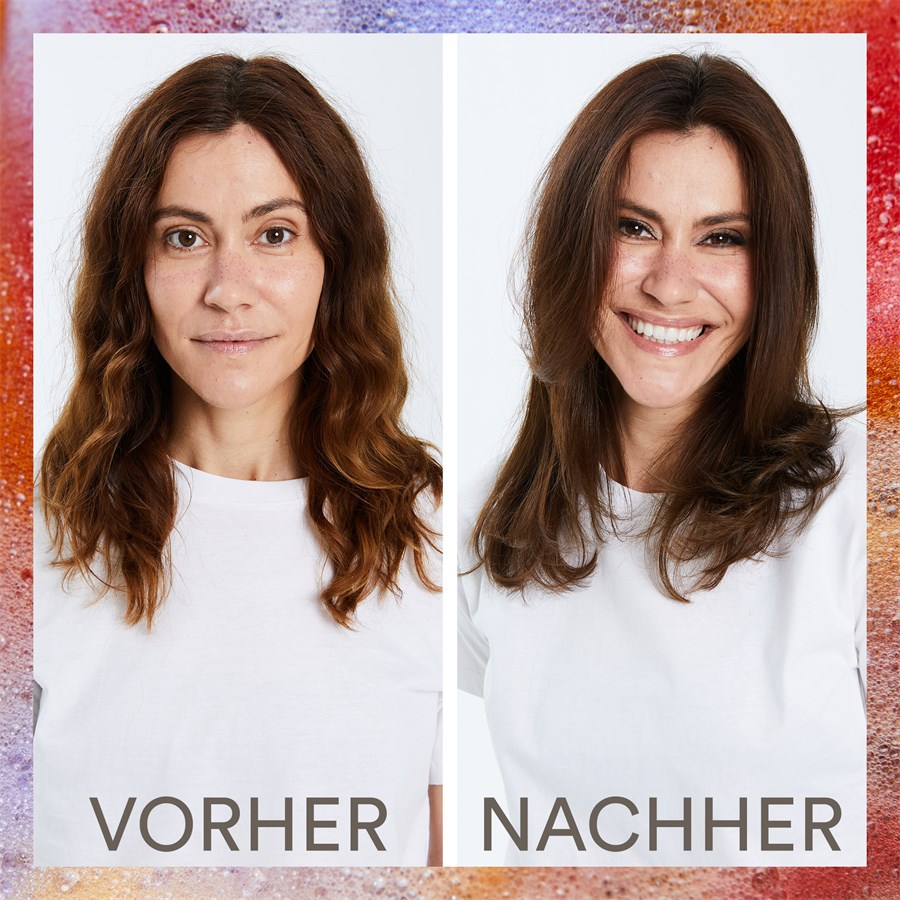 Подготовка: Вымойте волосы и высушите их полотенцем. Наденьте подходящие перчатки. Хорошо встряхните флакон. Держите мусс вверх дном, чтобы выдавить средство. Несмываемое средство: Используйте как несмываемое средство для объемных волос с легкой фиксацией. Нанесите на волосы и равномерно распределите. Высушите волосы феном до желаемой степени. Смывание: Используйте как смываемое средство для более интенсивного цвета без фиксации. Нанесите достаточное количество средства в зависимости от длины и густоты волос. Равномерно распределите расческой. Оставьте на 10 минут. Смойте теплой водой.