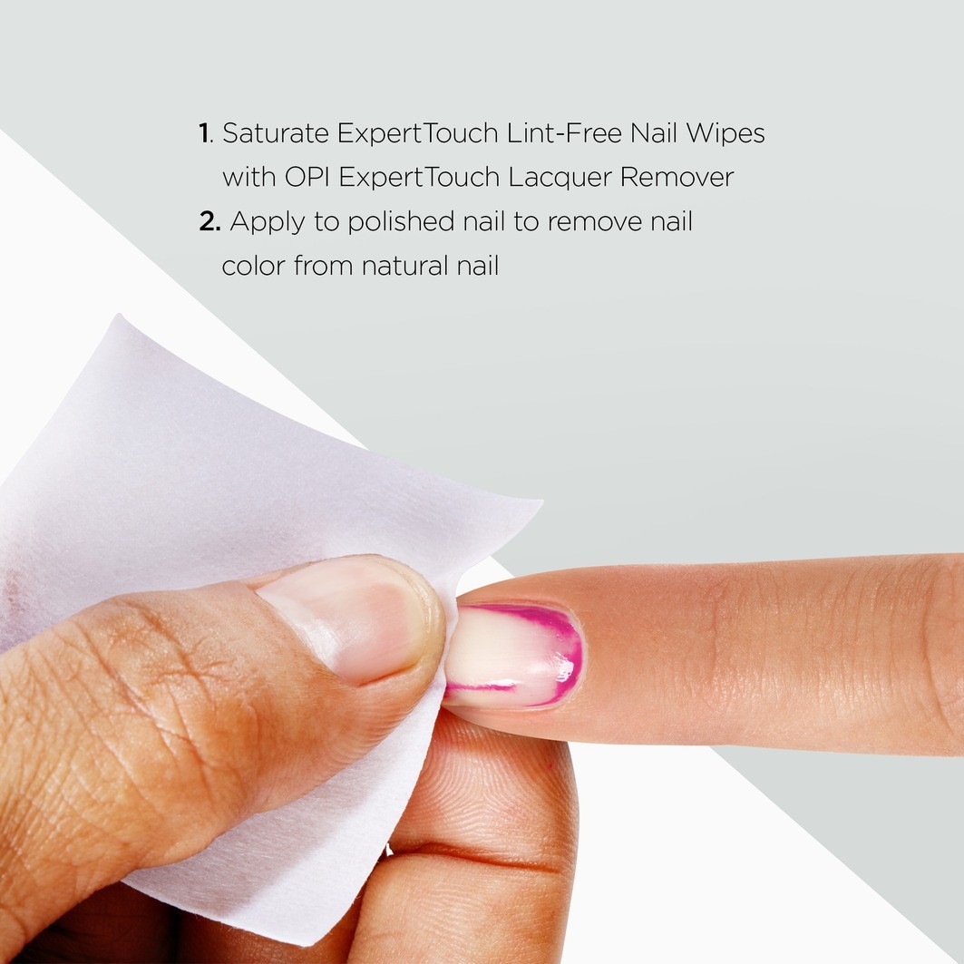 Смочите ватный диск жидкостью для снятия лака, слегка прижмите его к ногтю и снимите по направлению роста ногтя.