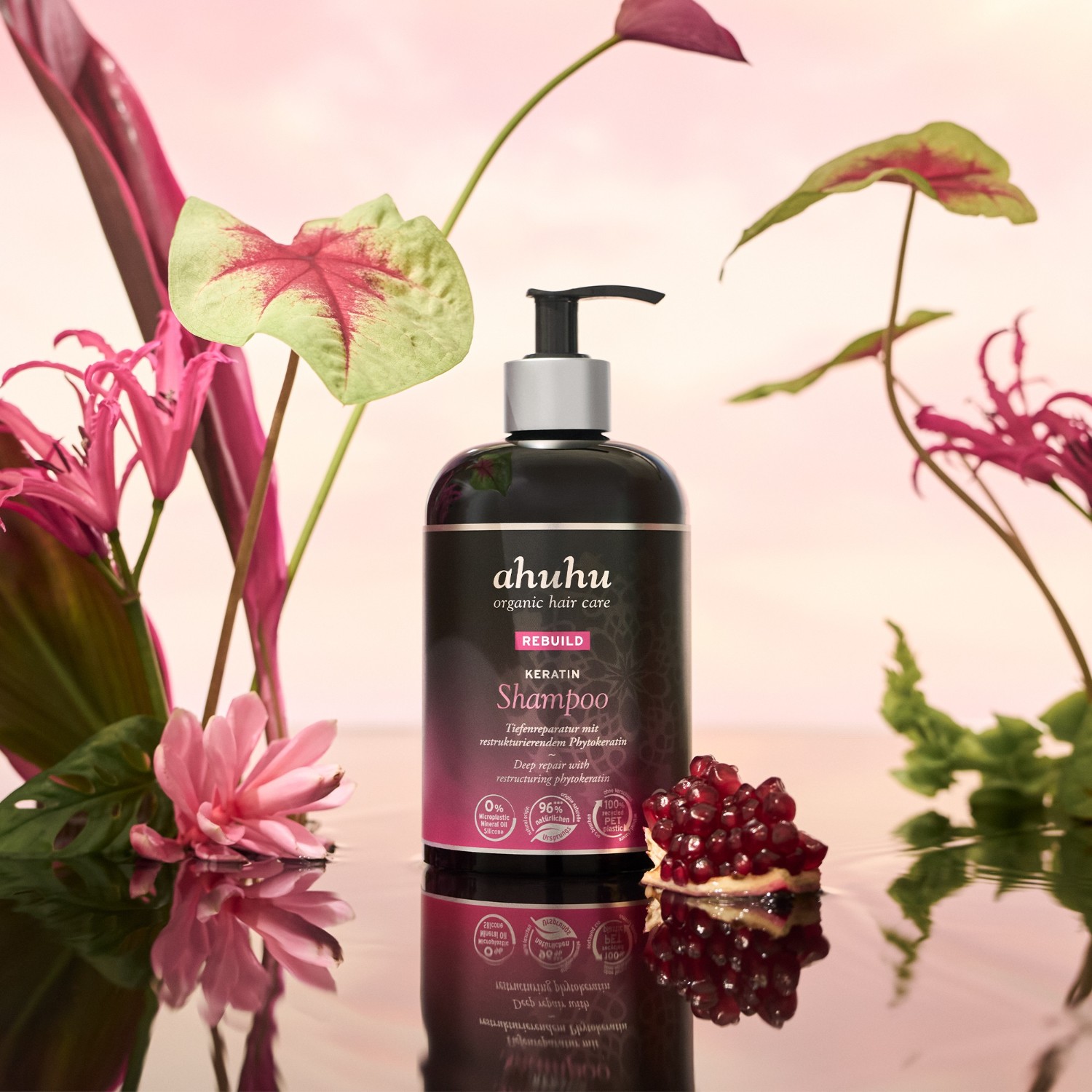 Состав: вода (Aqua), кокосульфат натрия, коко-глюкозид, глицерин, глицерил олеат, кокоамфоацетат натрия, лимонная кислота, гидролизованный растительный белок, экстракт семян амаранта хвостатого (Amaranthus Caudatus), экстракт липы опушенной (Tila Tomentosa), экстракт плодов граната (Punica Granatum), экстракт семян тефрозии пурпурной (Tephrosia Purpurea), экстракт корня свеклы (Beta Vulgaris), масло семян макадамии (Macadamia Ternifolia), пантенол, аллантоин, гиалуронат натрия, мочевина, фруктоолигосахариды, аскорбил пальмитат, гидрогенизированные неомыляемые соединения оливкового масла, гидрогенизированный этилгексил оливат, лецитин, лактат натрия, лактат калия, молочная кислота, Токоферол, гидрогенизированные пальмовые глицериды цитрат, натрия пирролидонкарбонат, левулиновая кислота, лаурилглюкозиды, парфюмерная композиция (ароматизатор), полиглицерил-4 капрат, гликольдистеарат, гуар гидроксипропилтримония хлорид, лаурилглюкозы карбоксилат натрия, гидроксипропил окисленный крахмал ПГ-тримония хлорид, крахмал гидроксипропилтримония хлорид, кокоилглутамат натрия, глюконат натрия, пропиленгликоль, пропандиол, глицерилстеарат, п-анисовая кислота, хлорид натрия, сорбат калия, бензоат натрия, цитронеллол, лимонен, линалоол