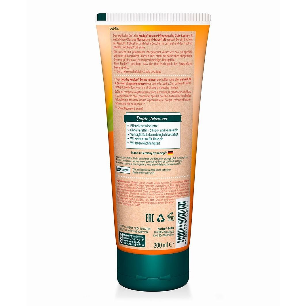 Состав: вода (Aqua), лауретсульфат натрия, глицерин, кокамидопропилбетаин, коко-глюкозид, ПЭГ-40 сорбитан перолеат, глицерил олеат, ПЭГ-18 глицерил олеат/кокоат, масло семян пассифлоры съедобной (Passiflora Edulis), масло кожуры грейпфрута (Citrus Grandis), сладкое миндаль (Prunus Amygdalus Dulcis) Миндальное масло, масло кожуры лимона (Citrus Limon), масло кожуры апельсина (Citrus Aurantium Dulcis), лимонен, линалоол, гексилциннамаль, цитронеллол, левулинат натрия, анисат натрия, парфюмерная композиция (ароматизатор), гликольдистеарат, хлорид натрия, лимонная кислота, гидроксипропилметилцеллюлоза, ПЭГ-14М, гидроксид натрия, диоксид кремния, масло сои (Glycine Soja), гидрогенизированные пальмовые глицериды, цитраты, токоферол, CI 15985