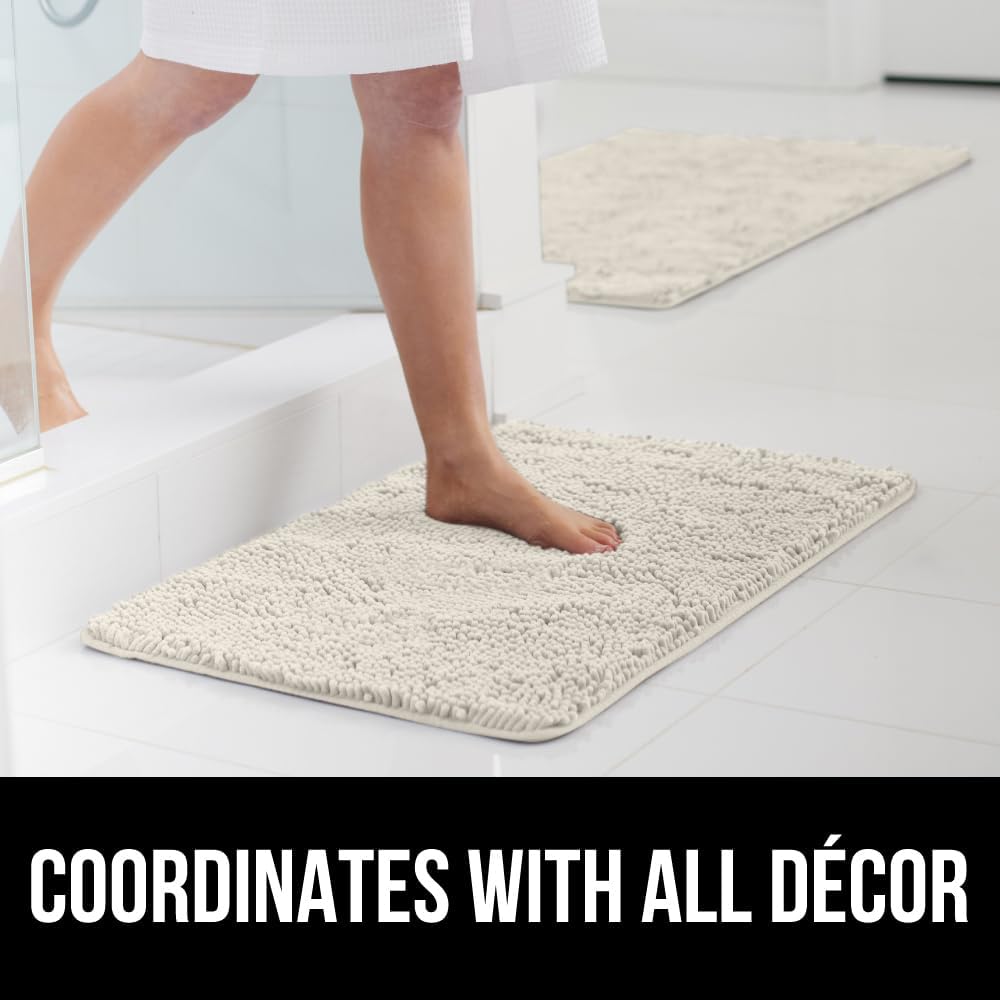 Коврик для ванной Gorilla Grip имеет впитывающий верхний слой из шенилла, который быстро удаляет влагу с ног. Его плотная резиновая подложка надёжно фиксирует коврик на полу, предотвращая скольжение. Благодаря быстросохнущим материалам, он остаётся гигиеничным и препятствует образованию плесени. Продукт идеально сочетает безопасность, удобство и практичность для ежедневного использования.