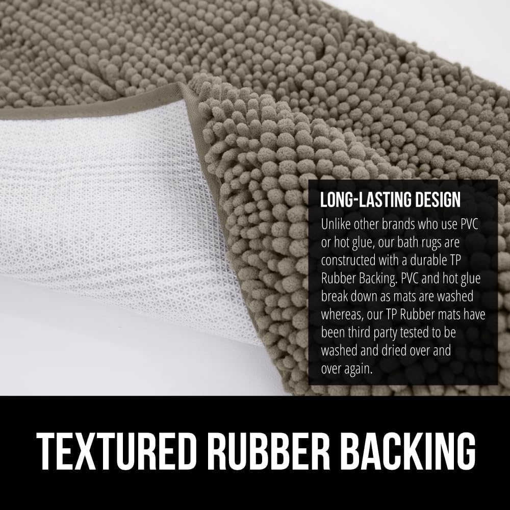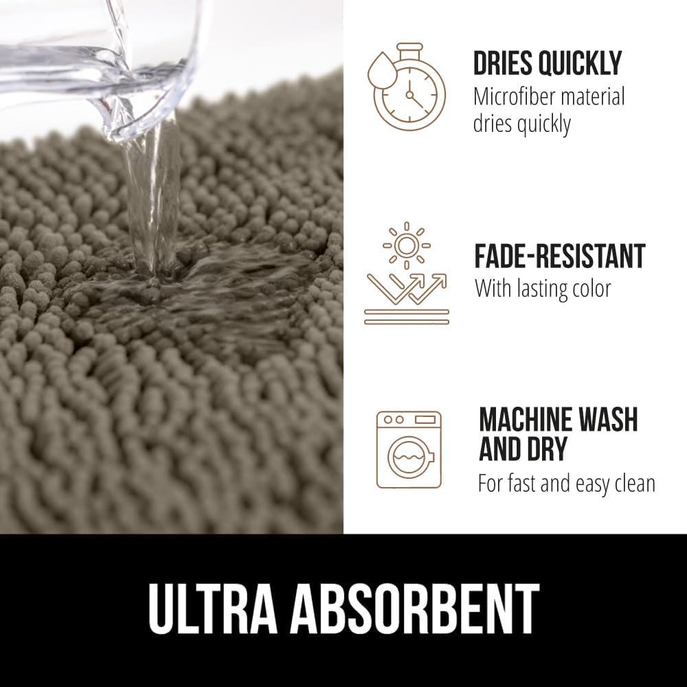 Коврик для ванной Gorilla Grip имеет впитывающий верхний слой из шенилла, который быстро удаляет влагу с ног. Его плотная резиновая подложка надёжно фиксирует коврик на полу, предотвращая скольжение. Благодаря быстросохнущим материалам, он остаётся гигиеничным и препятствует образованию плесени. Продукт идеально сочетает безопасность, удобство и практичность для ежедневного использования.