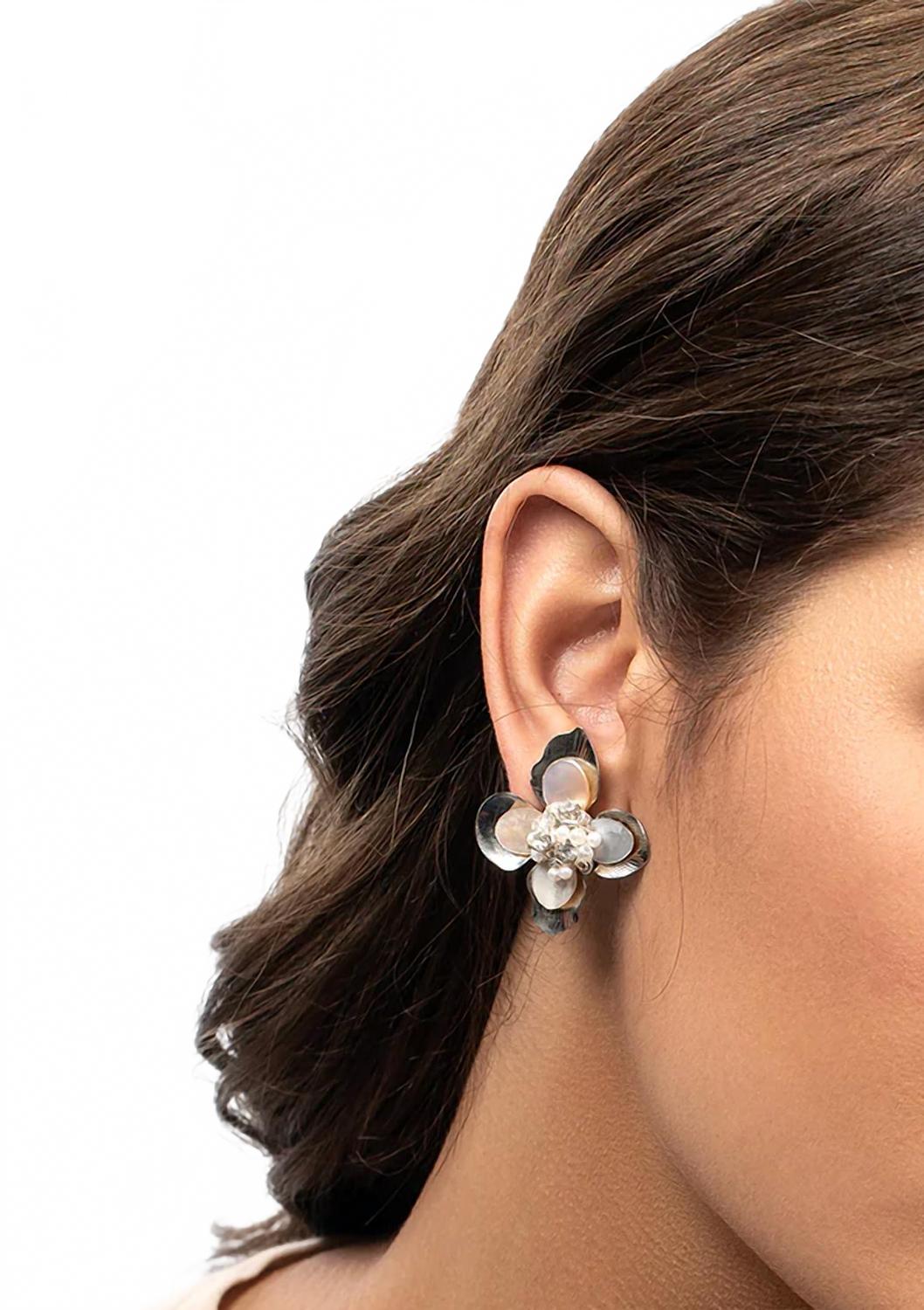 Классические серьги, которые будут уместны в любой сезон. Подчеркните свой стиль серьгами Azura от DEEPA GURNANI. Эти серебряные серьги-гвоздики с цветочным мотивом, украшенные круглыми бриллиантовыми белыми жемчужинами, изготовлены из смеси хлопка, латуни, стеклянных бусин, стеклянных камней, перламутра и хлопковой нити. Подложка из гладкой замши обеспечивает дополнительный комфорт. Благодаря легкой застежке-гвоздику из мягкой стали, они станут элегантным модным акцентом. Эти модные серьги, воплощающие июньский камень, идеально дополнят любой наряд.