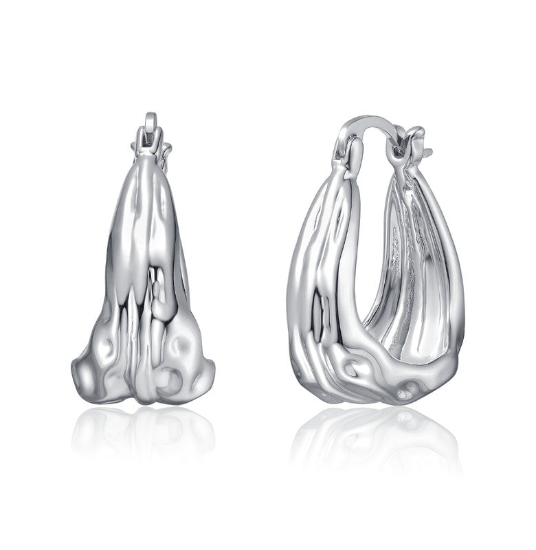 Скульптурные серьги-кольца «Водопад» с покрытием из белого золота. Дополните любой гардероб этими красивыми продолговатыми серьгами-кольцами, выполненными из прочного белого золота. Текстурированный водопадный дизайн придает серьгам современный абстрактный художественный силуэт, привлекая внимание к их богатому, роскошному блеску. Застежки-кнопки надежно фиксируют серьги-кольца, добавляя им подвижности. Дополните свой образ чем-то уникальным и гламурным, легко сочетаемым. Эти серьги также доступны с покрытием из 14-каратного золота. Размер: 21,5 мм.