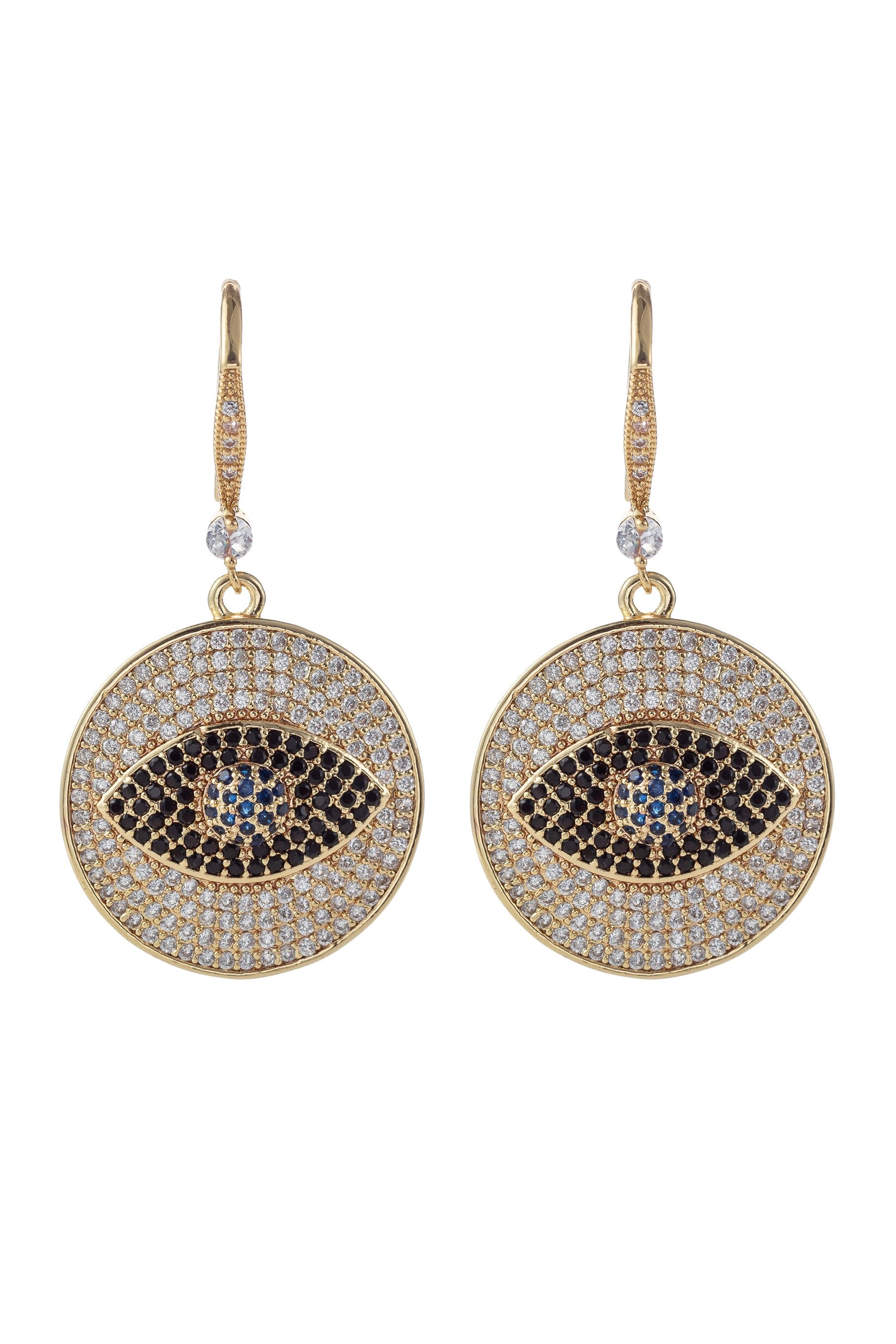 Дополните свой комплект украшений этими серьгами от сглаза. Эти серьги-подвески, покрытые 18-каратным золотом, украшены яркими кристаллами фианита. Дополните комплект одним из наших ожерелий от сглаза!
