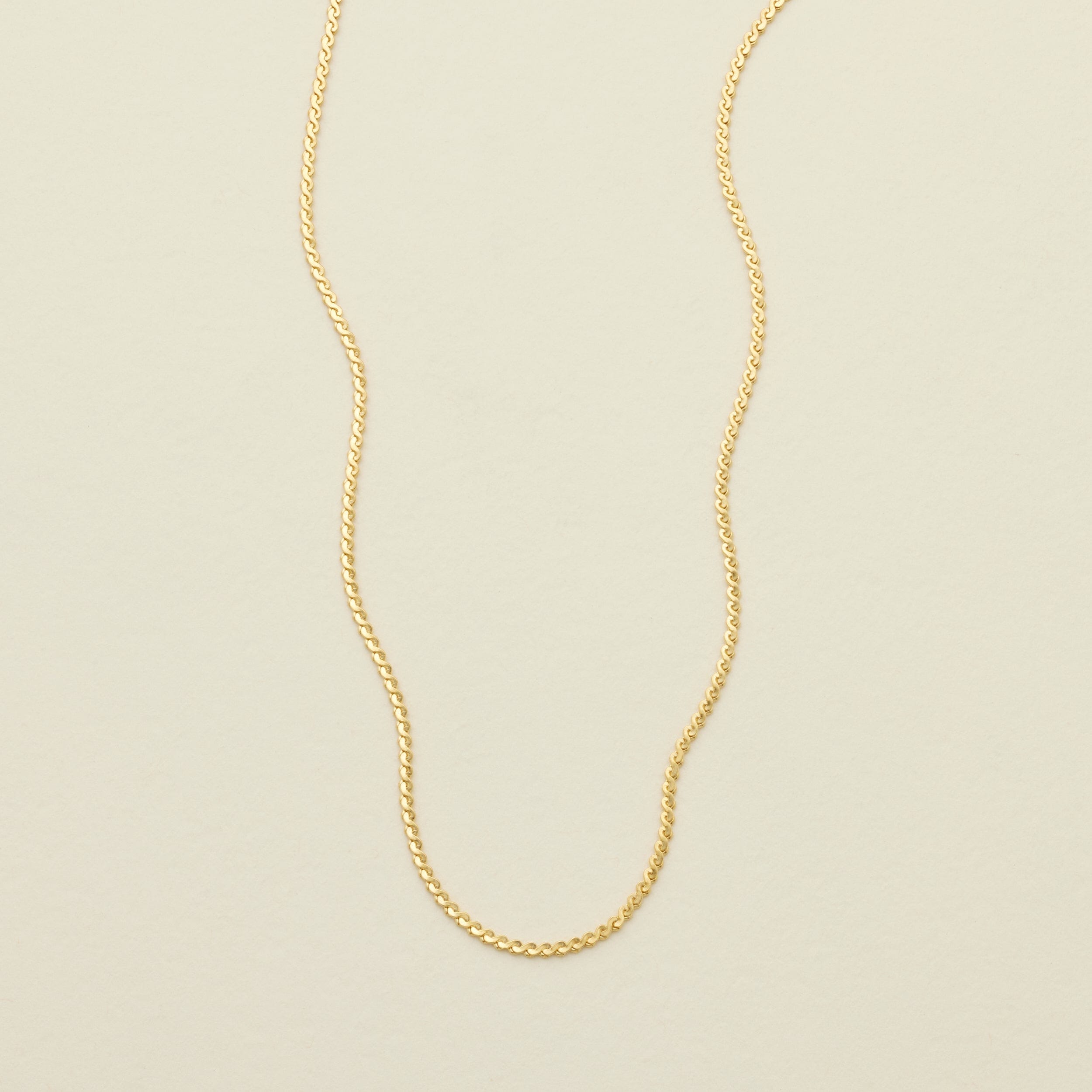 Мягкое и нежное сияние. Ожерелье-цепочка «Серпантин» словно жидкое золото струится по ключицам, играя всеми нужными бликами. Это украшение легко украсит любой наряд. Доставляемое из студии Made by Mary в подарочной коробке-книжке, каждое изделие тщательно изготовлено с мыслью о вашей истории. Размер: 16 дюймов (40 см) с удлинителем 1,5 дюйма (3,5 см) и застежкой-карабином. Позолоченное покрытие - мы ценим прочность и блеск украшений с позолотой 14 карат; оно идеально подходит для тех вечных украшений в вашей шкатулке. При правильном уходе эти украшения сохранят свой безупречный блеск долгие годы.