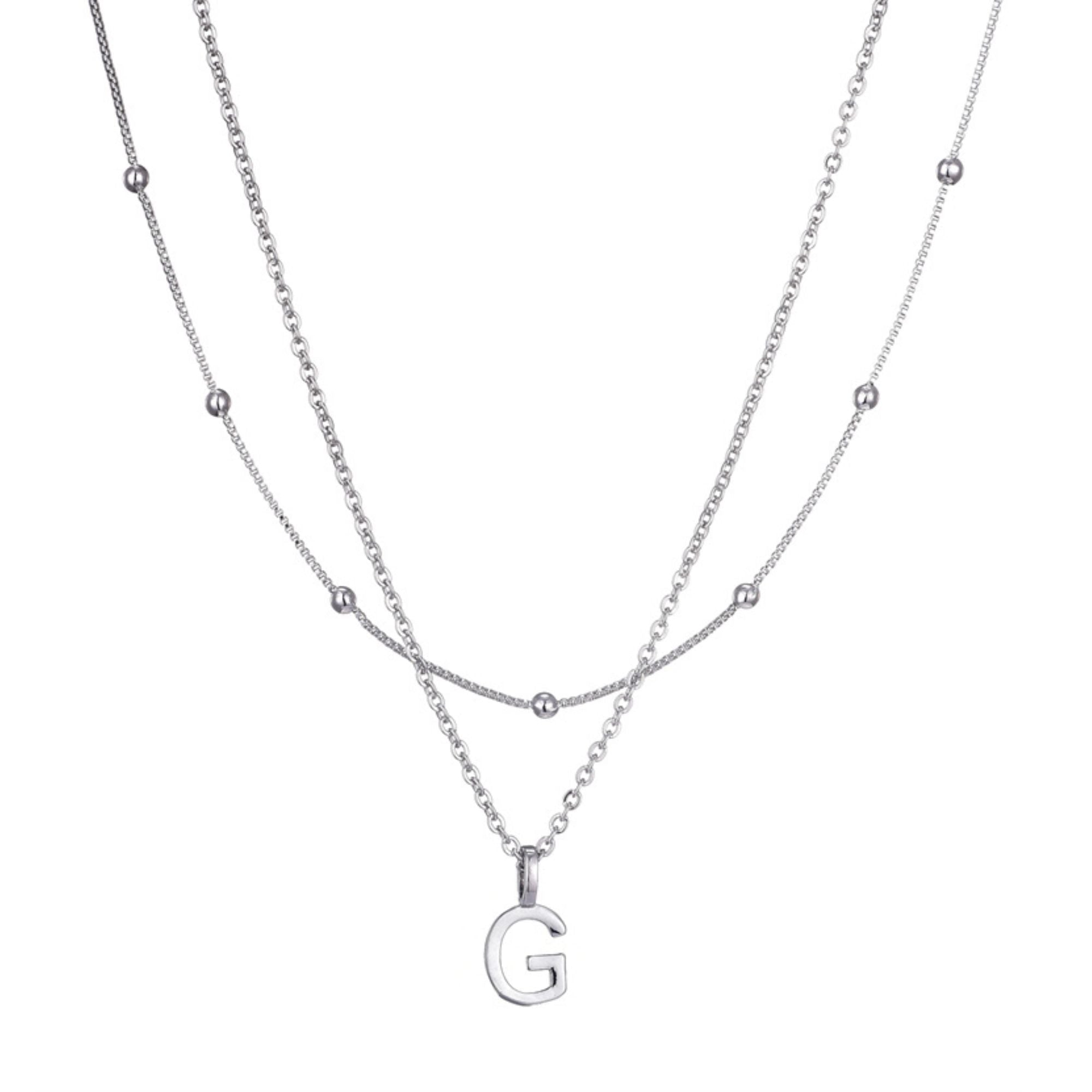 Посеребренное многослойное ожерелье с инициалами Adornia, Silver-G