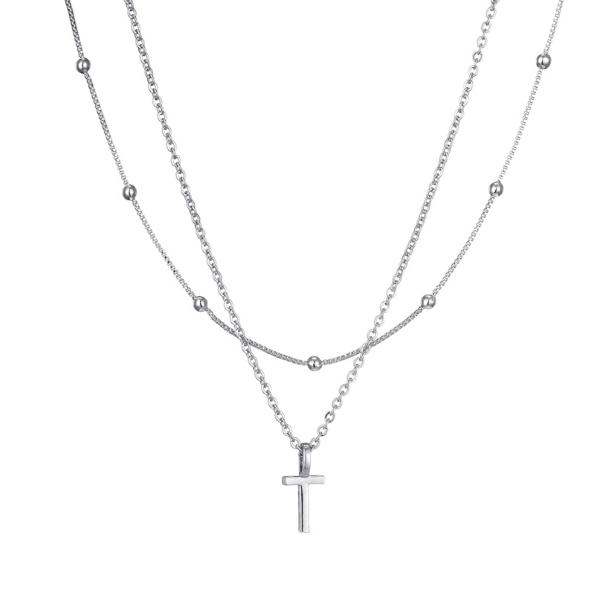 Посеребренное многослойное ожерелье с инициалами Adornia, Silver-T