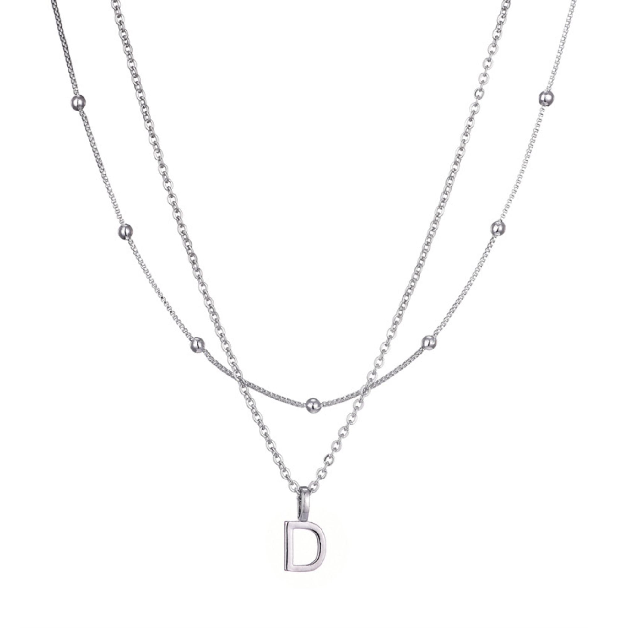 Посеребренное многослойное ожерелье с инициалами Adornia, Silver-D