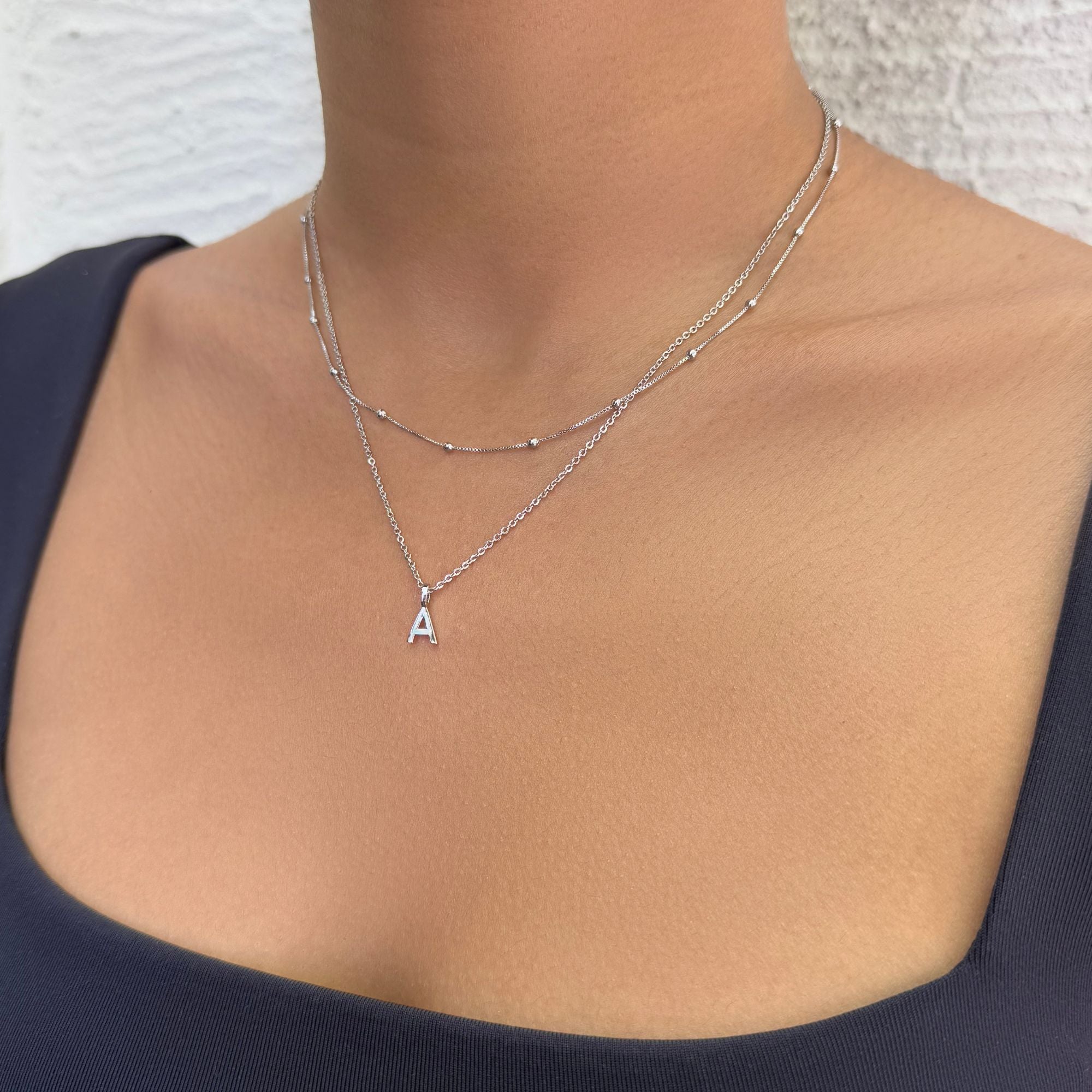 Роскошные трендовые украшения на каждый день.Изготовлен из посеребренной латуни.Закрытие лобстераКомплект из 2 ожерелий - регулируемая длина 16-20 дюймовИнициал - 7 мм x 7 мм