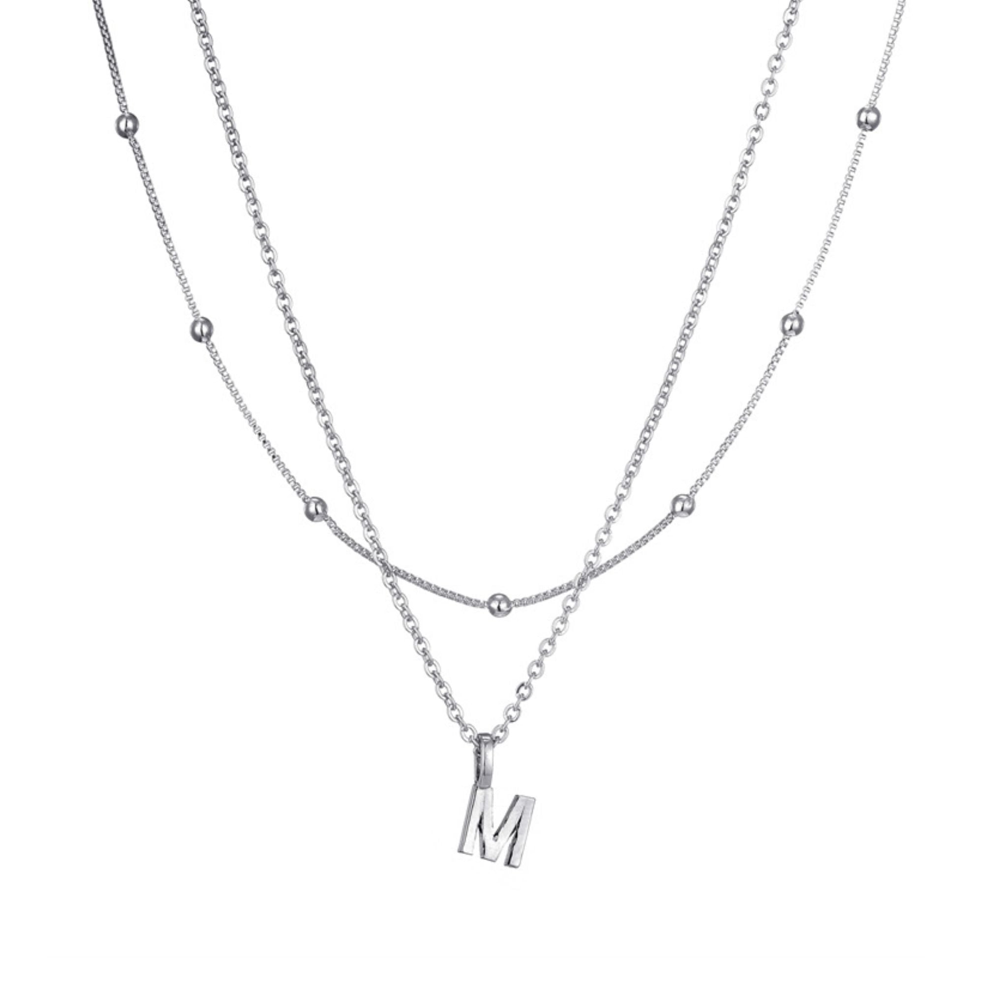 Посеребренное многослойное ожерелье с инициалами Adornia, Silver-M