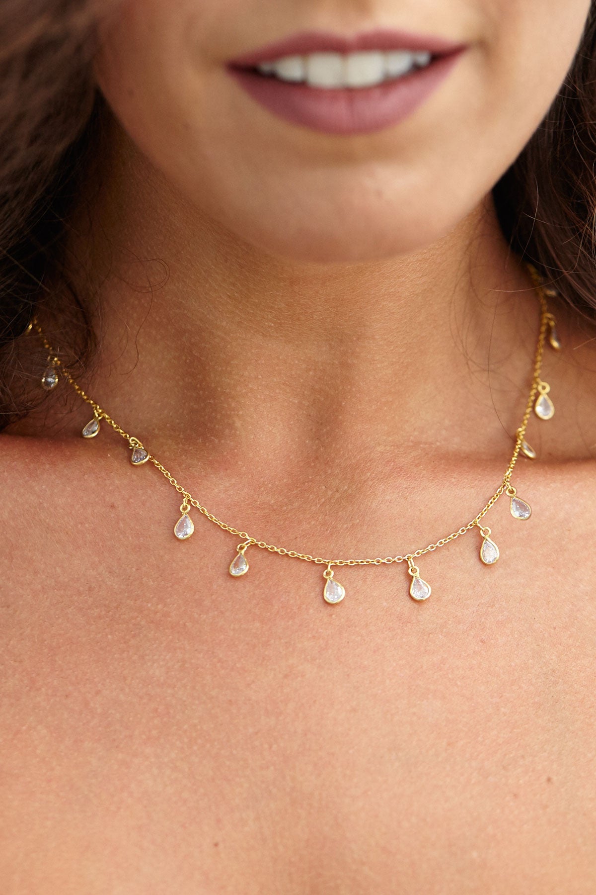 Ожерелье-капля из стерлингового серебра. Подвески с кубическими цирконами грушевидной формы добавляют блеска изящной цепочке из стерлингового серебра, создавая это элегантное ожерелье. Отличное украшение для многослойного ношения - идеально подходит как для вечернего, так и для вечернего наряда! Длина 45 см.