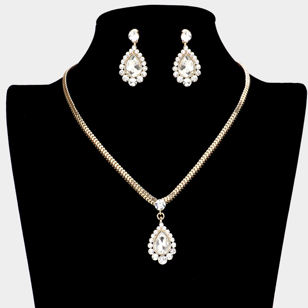 Размер ожерелья: 15,75" + 3,25". Размер кулона: 0,75" x 1,5". Размер сережек: 1,5". Украсьте свой образ этим потрясающим комплектом из ожерелья и сережек в форме капли, украшенных сверкающими кристаллами. Этот классический дизайн добавит изысканности свадьбам, вечеринкам и официальным мероприятиям. Идеально подходит для создания изящного, привлекающего внимание образа с непринужденным стилем.