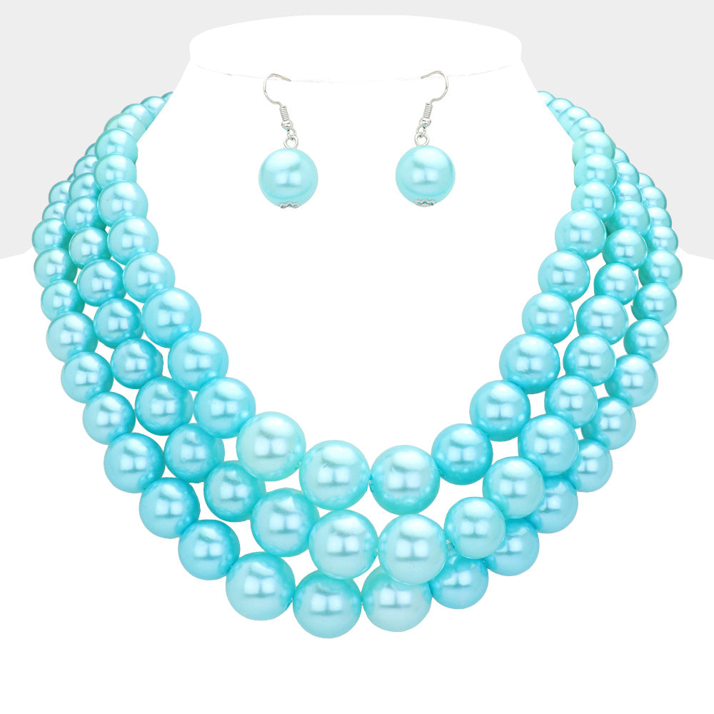 Ожерелье из 3 рядов жемчуга Fashnzfab, бирюзовый