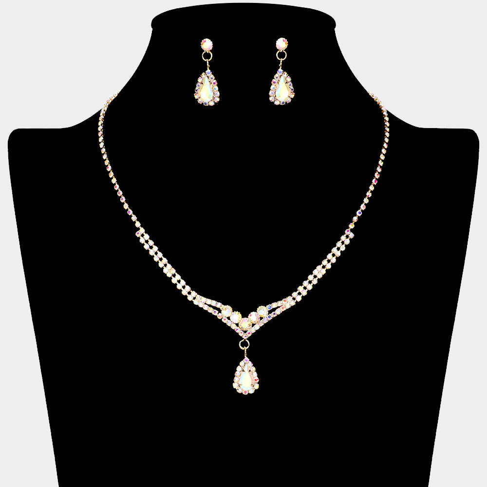 Ожерелье с каплевидным камнем и стразами Fashnzfab, Ab, Gold