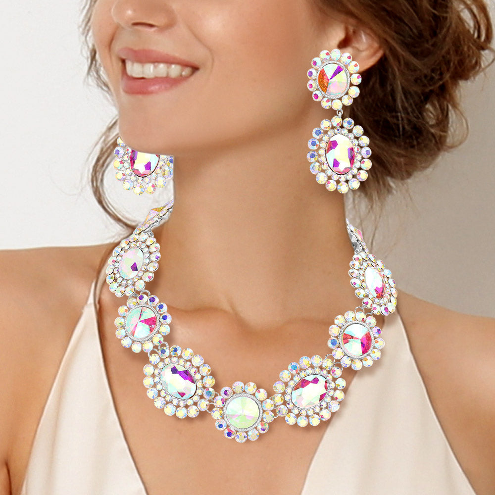 Вечернее ожерелье с круглыми овальными камнями Fashnzfab, Ab, Silver