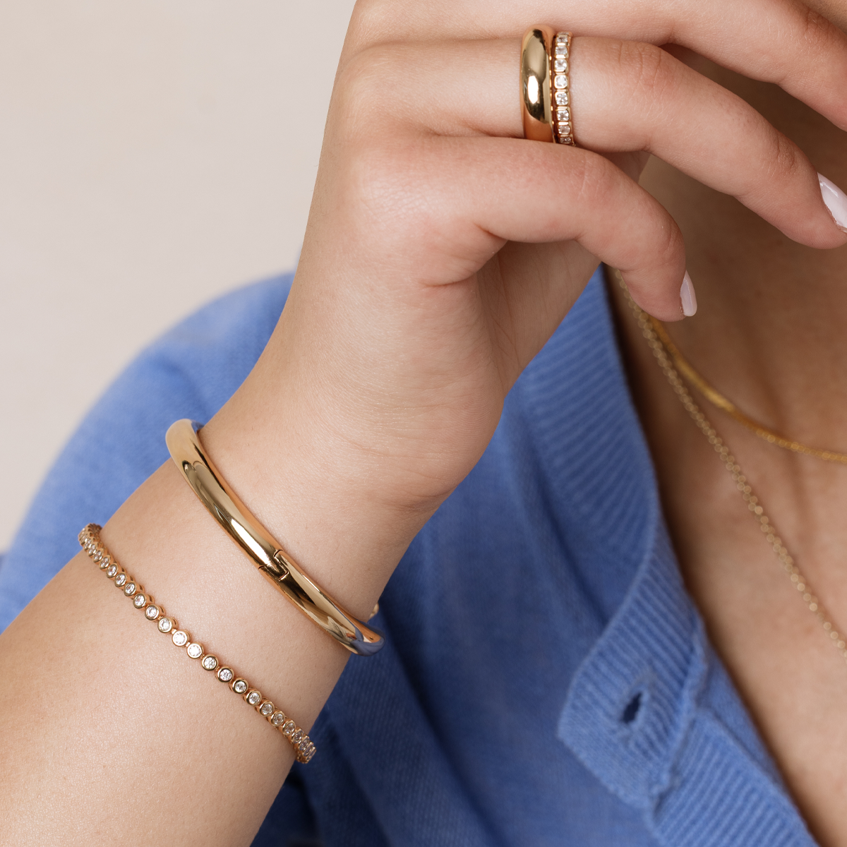 Этот изящный и скульптурный браслет-манжета обхватывает ваше запястье плавным, непрерывным золотым изгибом. Его полированная поверхность отражает свет, а незаметная застежка-шарнир обеспечивает легкость ношения. Современный, но неподвластный времени, он создает эффектный акцент с минимальными усилиями - элегантный аксессуар, созданный, чтобы впечатлять с любой стороны. Каждый браслет-манжета, доставленный из студии Made by Mary в подарочной коробке в форме книги, тщательно изготовлен с учетом вашей истории. Этот изящный и скульптурный браслет-манжета обхватывает ваше запястье плавным, непрерывным золотым изгибом. Его полированная поверхность отражает свет, а незаметная застежка-шарнир обеспечивает легкость ношения. Современный, но неподвластный времени, он производит яркое впечатление с минимальными усилиями - элегантный аксессуар, созданный, чтобы впечатлять с любой стороны. Каждое украшение из студии Made by Mary доставляется в подарочной коробке в форме книги. Каждое изделие тщательно изготовлено с учетом вашей истории. Как ухаживать за украшениями. Мы прилагаем все усилия для того, чтобы они оставались красивыми долгое время, однако обратите внимание, что позолоченные украшения могут со временем естественным образом изнашиваться, особенно при частом контакте с водой, потом, лосьонами, духами или чистящими средствами. Чтобы сохранить покрытие, рекомендуем снимать украшения перед купанием, плаванием или занятиями спортом и хранить их в сухом месте, когда они не используются. Цвет: латунь с покрытием 14 карат. Размер: 6 или 7 дюймов. Ширина манжеты: 6 мм. Позолота: наши позолоченные латунные украшения отличаются роскошным покрытием 14 карат поверх прочной латуни. Ослепительный блеск добавит элегантности любому образу. При правильном уходе эти украшения сохранят свою красоту, став идеальным дополнением к вашей коллекции украшений.