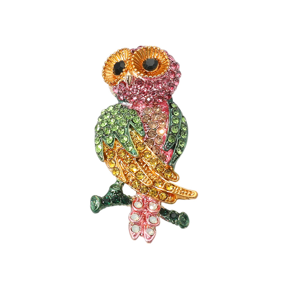 Брошь-булавка в виде совы, вымощенной камнем Fashnzfab, Multi