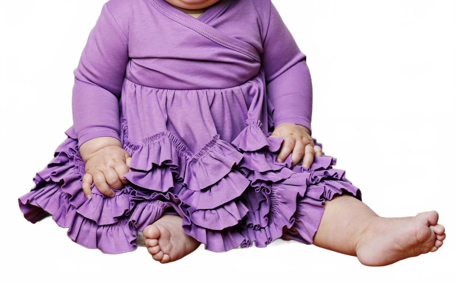 Откройте для себя платье для девочек Jada аметистового цвета от Lemon Loves Layette, сшитое из 100% перуанского хлопка, которое невероятно нежно ласкает кожу вашего малыша. Это очаровательное изделие с крестообразным вырезом переходит в очаровательный лиф, состоящий из пяти слоев очаровательных оборок. Это платье идеально подходит для повседневной носки и празднования дней рождения, предлагая строгий минималистичный образ, идеальный для весны. Дополните образ повязкой на голову, чтобы завершить очаровательный образ вашей малышки.