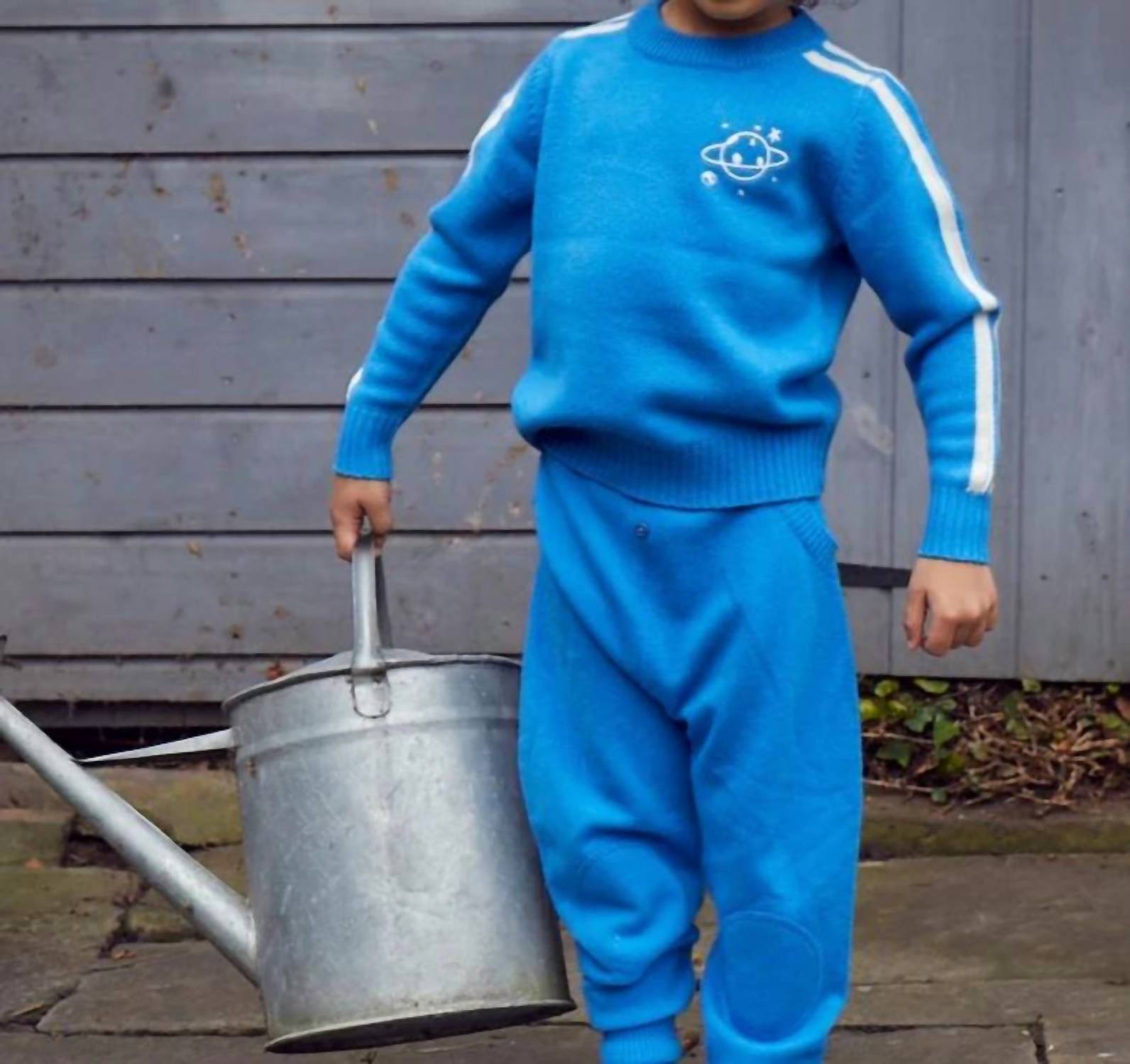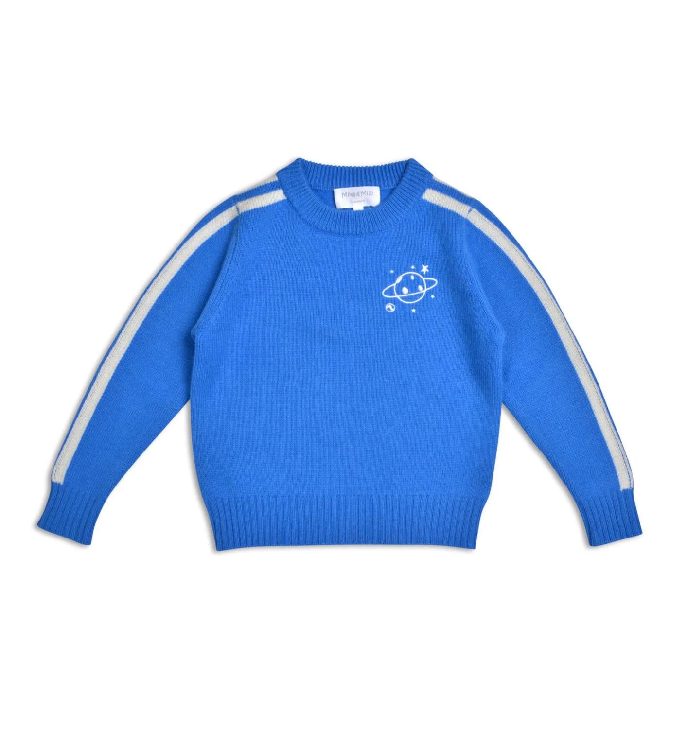 Представляем джемпер Planet от MIKA & MILO - эффектную вещь в привлекательном лазурном оттенке, идеально подходящую для юных любителей приключений. Этот свитер, украшенный культовым изображением планеты и динамичными гоночными полосками, изготовлен из экологичной шерстяной смеси, состоящей на 30% из кашемира, полученного из этичных источников, и на 70% из мериносовой шерсти. Двойной ребристая отделка горловины, разработанный для осеннего сезона, обеспечивает легкость надевания, делая его идеальным для путешествий и мероприятий в стиле преппи. Отдайте предпочтение экологичной моде благодаря традиционному цельновязаному трикотажу, который сокращает отходы ткани на 40% по сравнению с фастфудом.