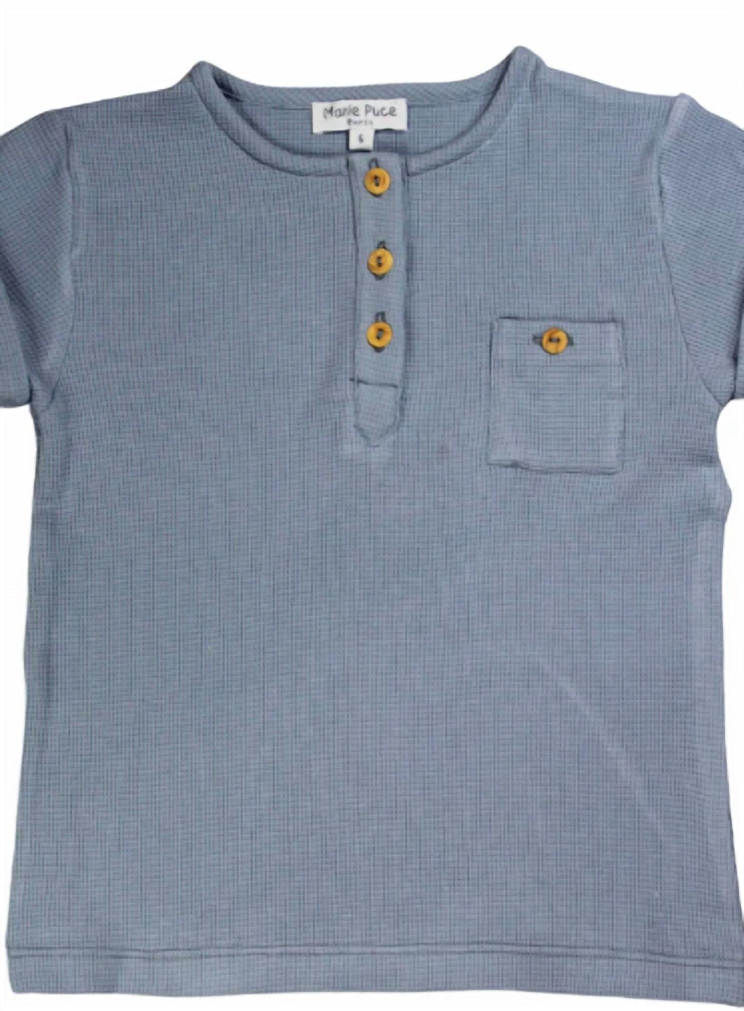 Представляем рубашку Marie Puce Malo для мальчиков модного синего цвета - незаменимый предмет гардероба на лето, идеально сочетающий в себе повседневность и шик. Эта универсальная модель с короткими рукавами, отделанными элегантными манжетами, выполнена в вафельном узоре, который добавит нотку богемности в гардероб вашего малыша. Удобная застежка на три деревянные пуговицы спереди и небольшой нагрудный карман с деревянной пуговицей для стильного образа. Рубашка идеально подходит для отпуска и других мероприятий и отличается простотой ухода, хотя точные инструкции по стирке не предусмотрены.