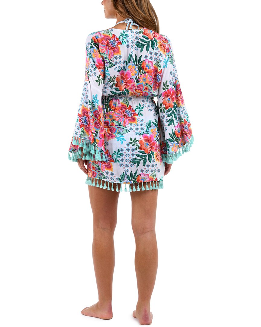 Представляем накидку-кимоно La Blanca - незаменимую вещь в вашем летнем гардеробе. Эта элегантная накидка белого цвета с рисунком идеально подходит для пляжа или бассейна. Завязка спереди добавляет стильный штрих и позволяет регулировать посадку. Накидка изготовлена ​​из 100% вискозы, легкая и удобная. Уход: ручная стирка и сушка на воздухе. Эта накидка-кимоно La Blanca, импортированная из-за высокого качества и роскоши, станет идеальным дополнением к вашей коллекции купальников.