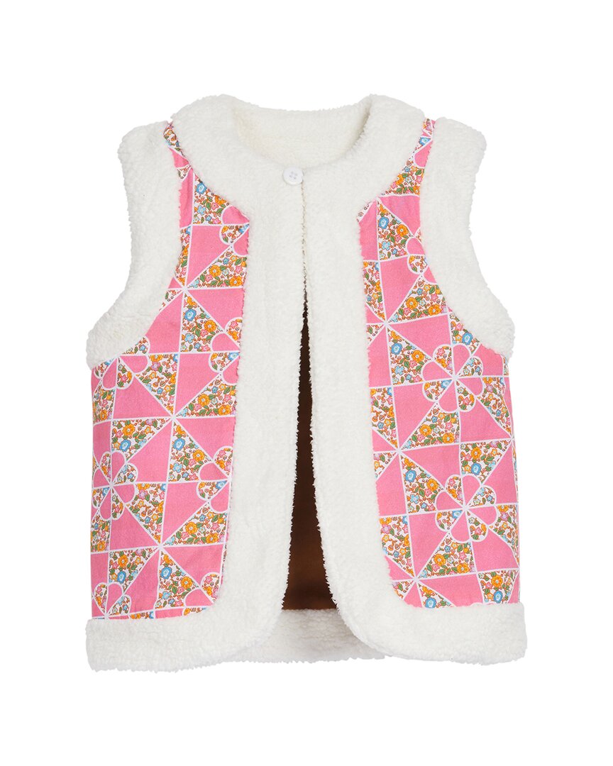 Представляем двусторонний жилет Bisby - незаменимую вещь в гардеробе вашей девочки. Этот жилет в винтажном стиле с узором Petersham Patchwork и отделкой из шерпы добавит стильности и тепла. Застежка на одну пуговицу позволяет легко надевать и снимать жилет, а верх из 100% полиэстера и подкладка из 100% хлопка обеспечивают комфорт и долговечность. Этот импортный жилет легко стирать в стиральной машине, поэтому он идеально подходит для любых приключений на свежем воздухе. Добавьте яркости и стиля в образ вашего ребенка с двусторонним жилетом Bisby уже сегодня.