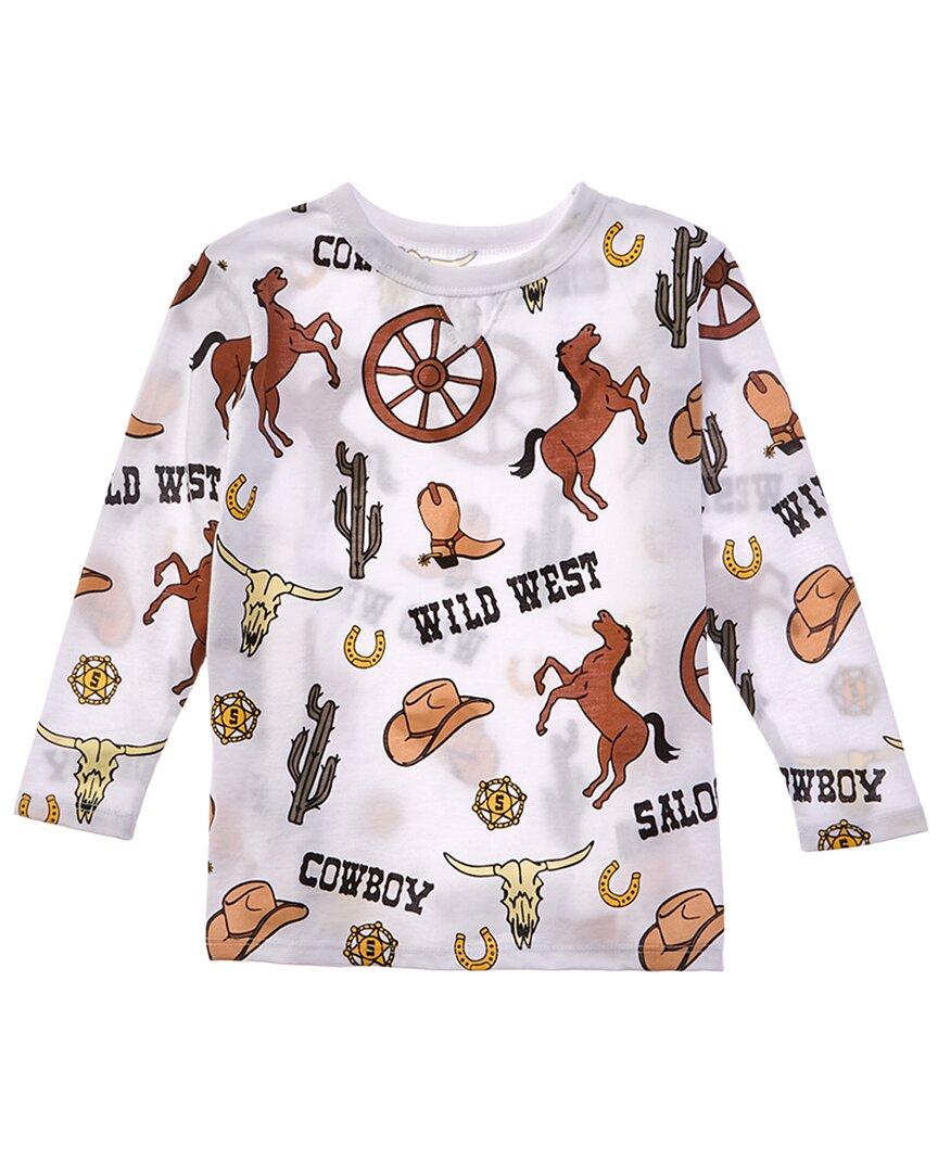 Представляем футболку Chaser Wild West для мальчиков, воплощающую суть брутального рок-н-ролльного стиля. Эта белая футболка, изготовленная из уникального состава (60% хлопка и 40% переработанного полиэстера), украшена принтом по всей поверхности, вдохновленным Диким Западом. Футболка идеально подойдет для вашего маленького модника: ее можно стирать в стиральной машине, а качество, которому вы можете доверять, - это импортный товар. Выбирайте бренд Chaser, известный своими постоянными экспериментами с трикотажем и окрашиванием, создавая самые стильные образы для детей. Добавьте нотку дерзости в гардероб вашего ребенка с футболкой Chaser Wild West.