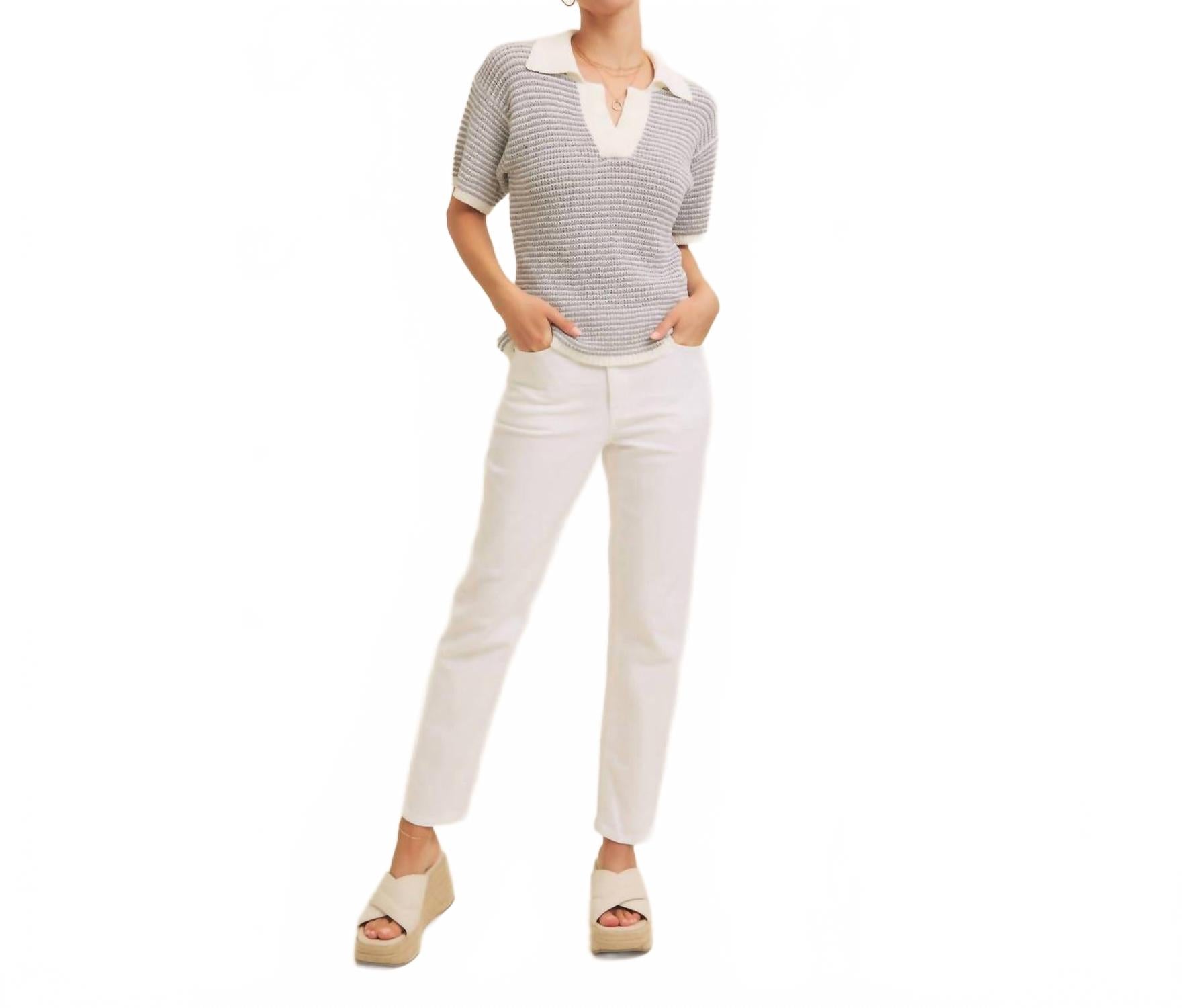 Сочетайте эту блузку с любимыми джинсами и шлепанцами для следующей девичьей вечеринки. Дополните свой отпускной гардероб вязаным топом Martha Knit Top от In February, который своим игривым стилем передает атмосферу побережья. Эта блузка с короткими рукавами, V-образным вырезом и воротником идеально подходит для солнечных весенних дней. Изготовлена ​​из легкого трикотажа с ярким разноцветным узором. Застежка: легко надевается. Простые инструкции по уходу.