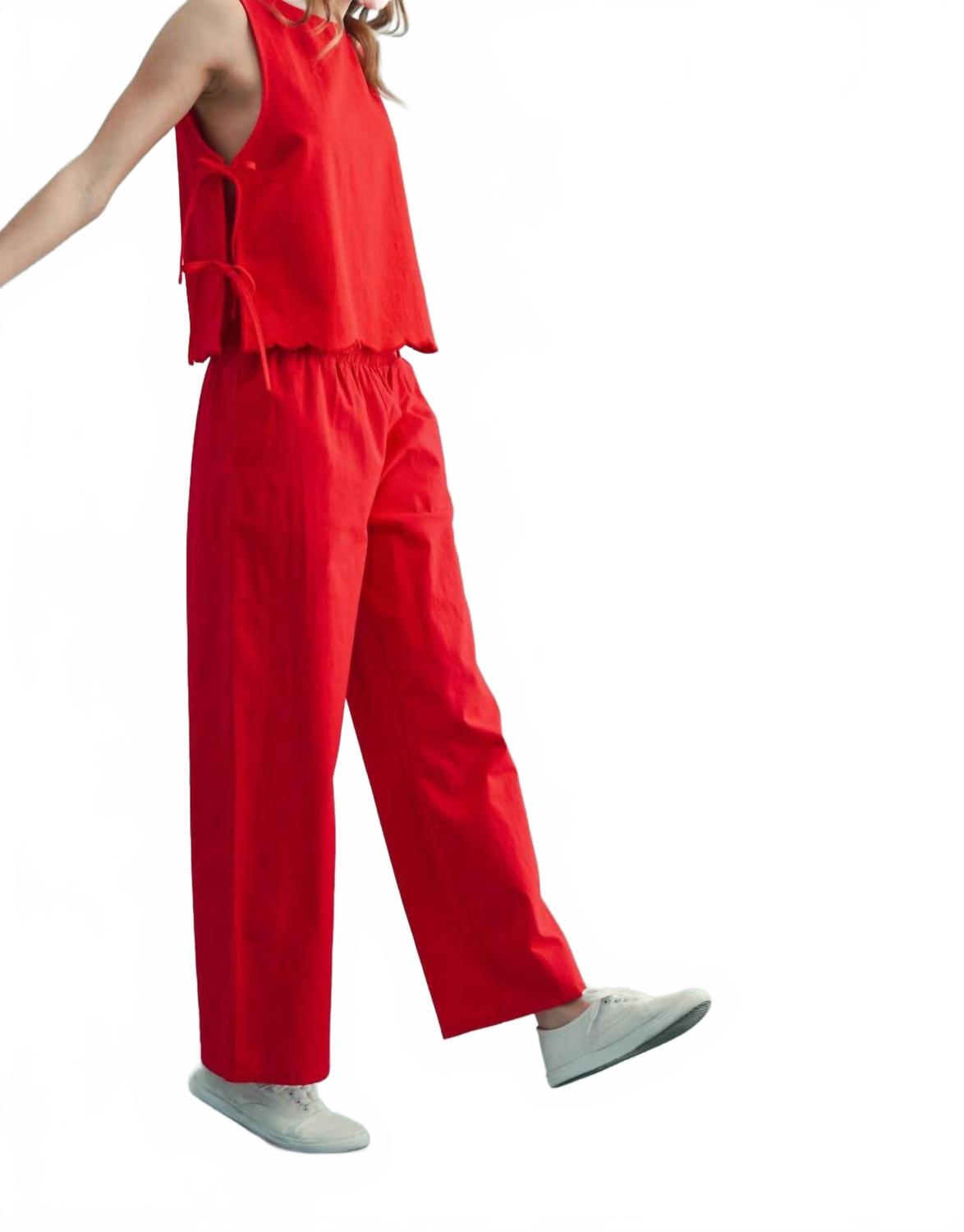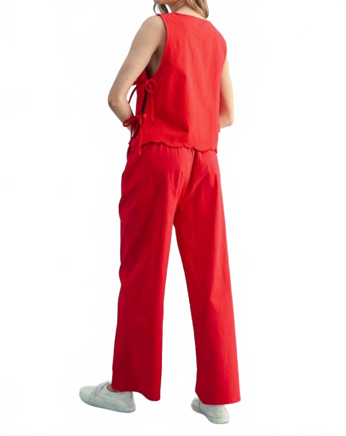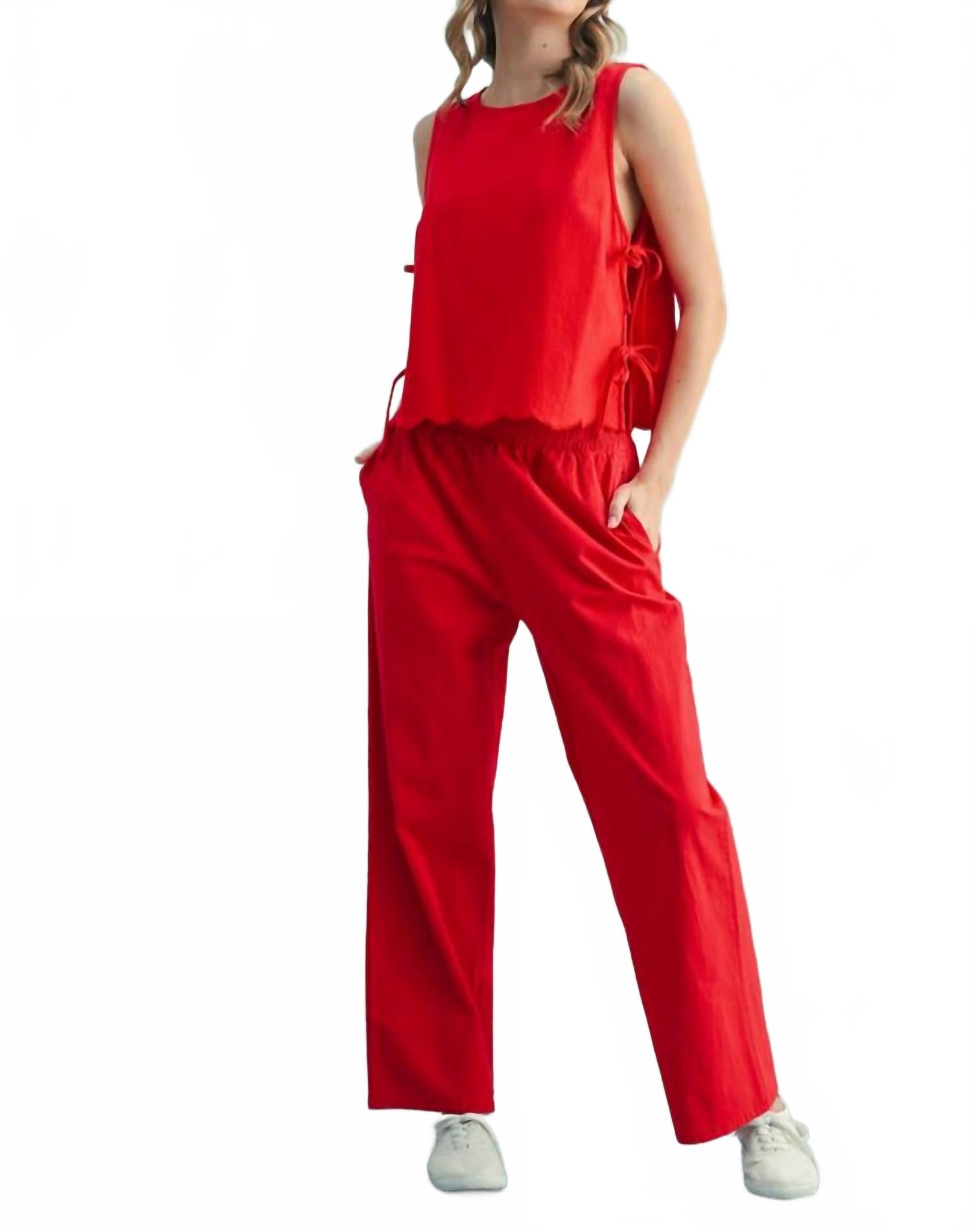 Идеальная майка для теплого времени года. Майка Mirren Tie от WISHLIST создана для ярких максималистов. Она выполнена в ярком вишневом цвете и завязывается на игривом завязке. Эта безрукавка с круглым вырезом, выгодно подчеркивающим фигуру, сшита из легкого 100% хлопка, что обеспечит комфорт в самые ветреные весенние праздники. Однотонный узор идеально подойдет для любого гардероба. Идеальный вариант для тех, кто хочет оставаться стильным и в то же время прохладным во время солнечных путешествий.