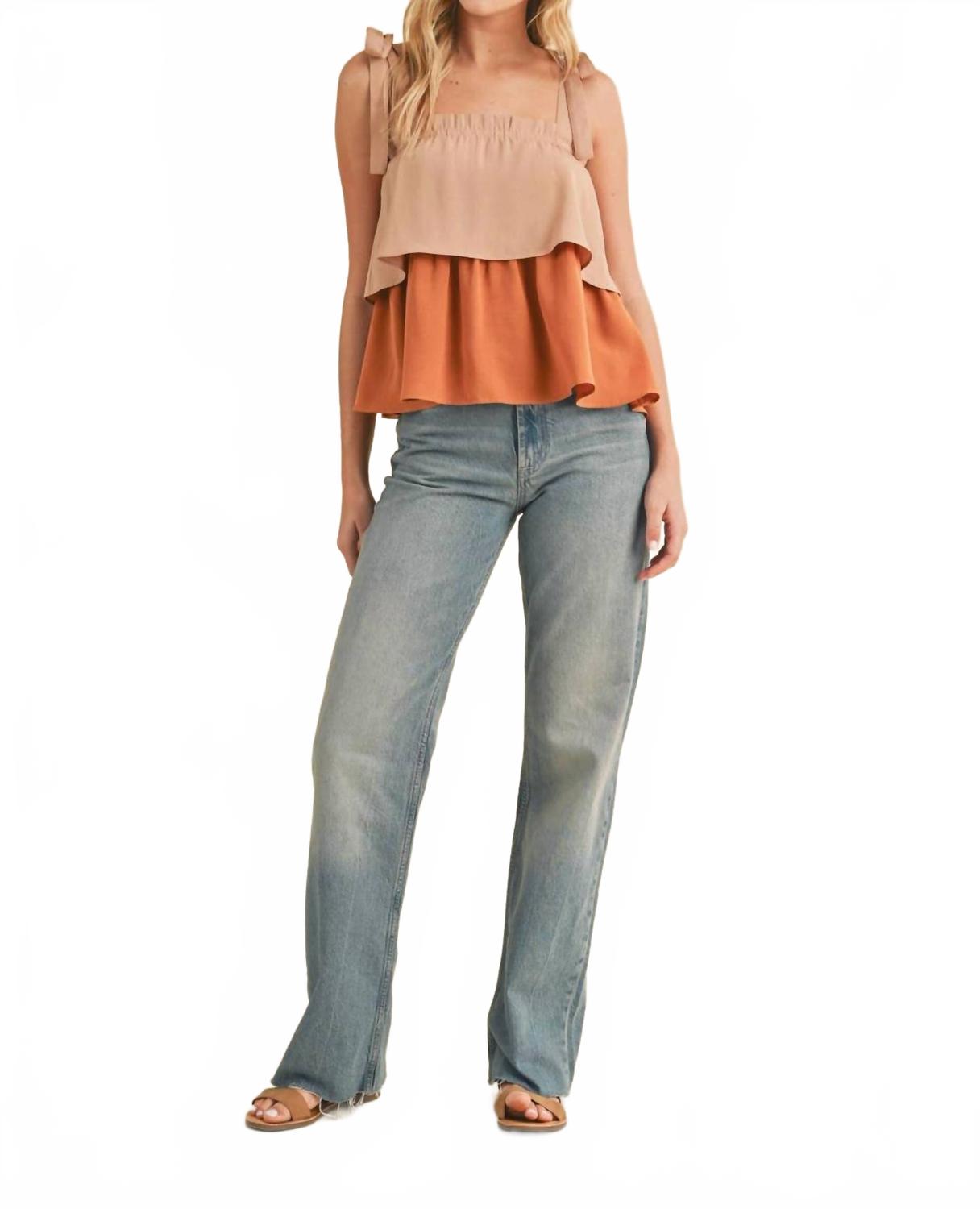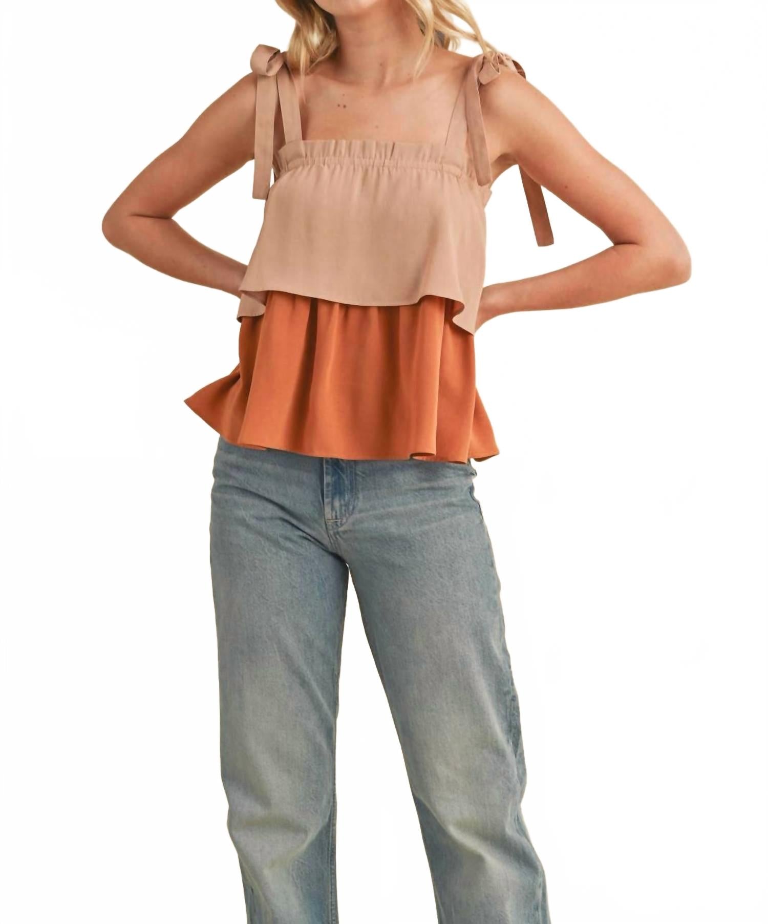 Идеальная майка для теплого времени года. Дополните свой стиль майкой Lainey от WISHLIST - стильным бежевым изделием, которое идеально подойдет для любого случая. Эта майка без рукавов с квадратным вырезом и ярким дизайном в стиле колор-блок обеспечит вам стильный образ, где бы вы ни находились. Застежка: завязка. Инструкции по уходу отсутствуют.