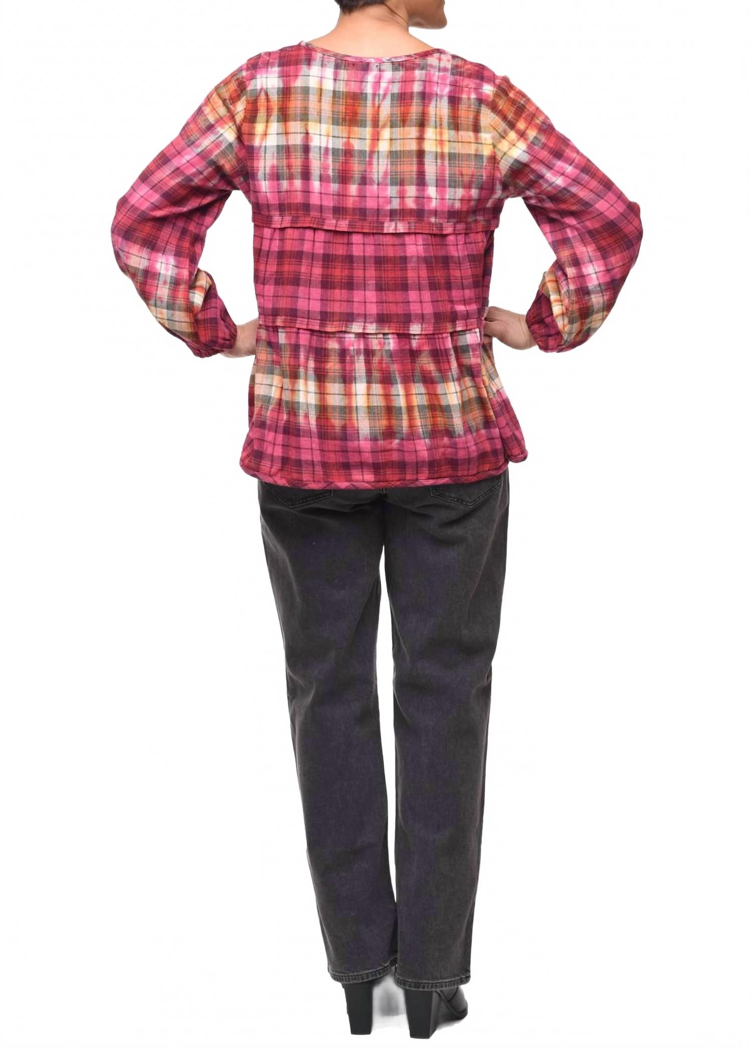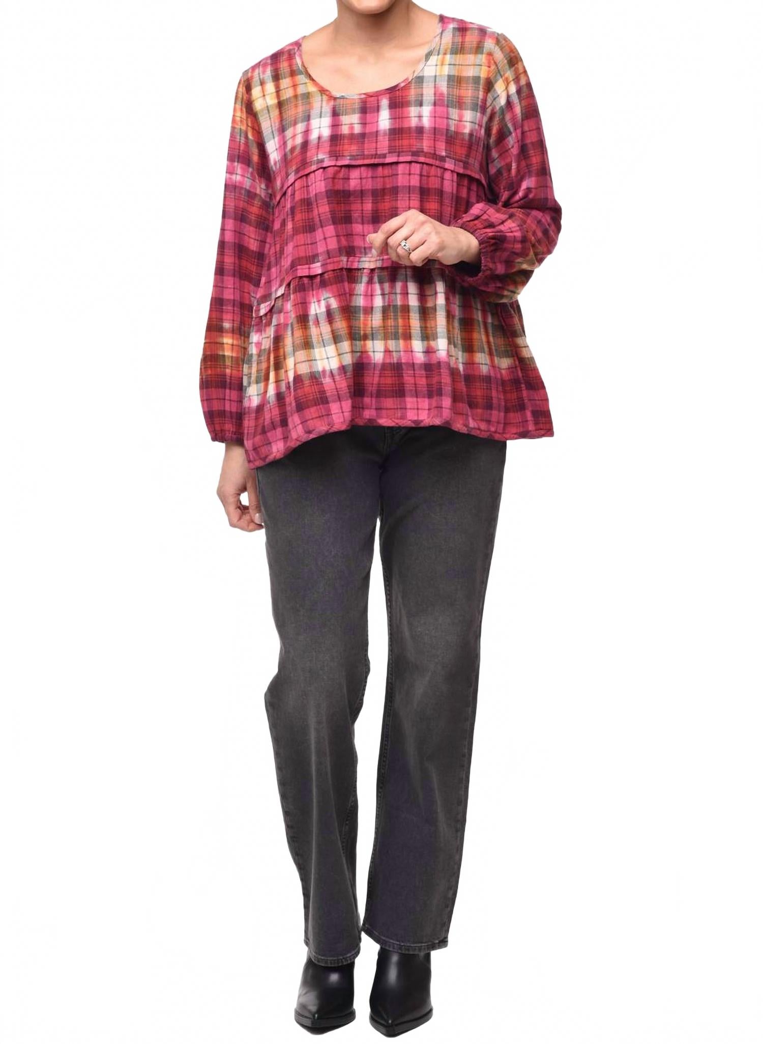 Сочетайте его с любимыми джинсами и шлепанцами для следующего девичника. Представляем топ Noelle от Tulip Clothing - шикарную и минималистичную клетчатую блузку, которая идеально подойдет для званого ужина этой весной. Этот топ с длинными рукавами, выполненный из 100% хлопка, отличается элегантными рукавами-фонариками, оборками и многоуровневой отделкой, создавая классический образ. Овальный вырез горловины гармонично сочетается с застежкой-липучкой, а боковые карманы добавляют функциональности. Уход прост: машинная стирка и сушка на веревке обеспечивают легкий уход. Доступно в размерах от XSmall до XXL, длина от 26,25 до 31,25 дюйма (61,5 см) и обхват груди от 40 до 50 дюймов (100,5 см).