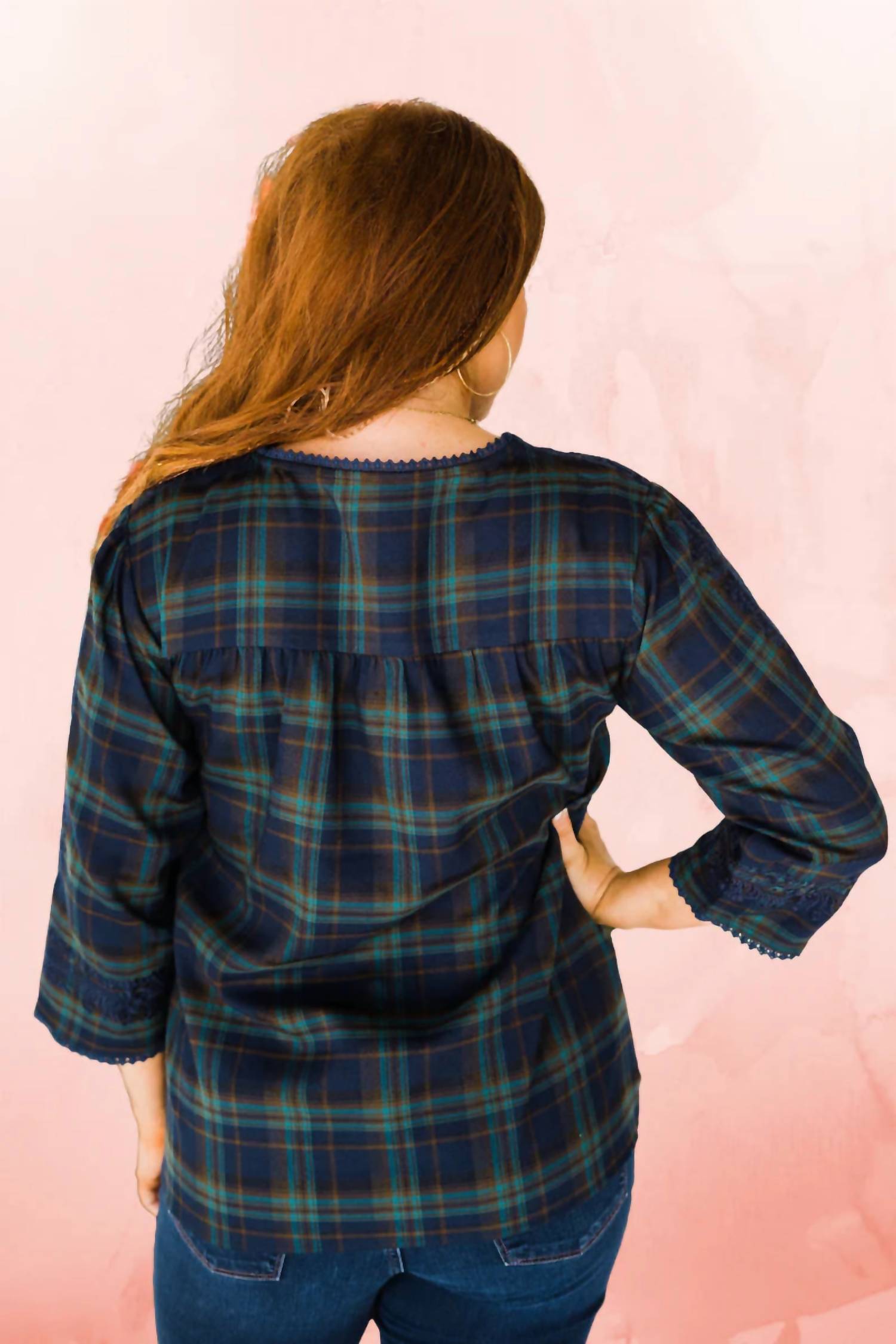 Идеальная футболка с длинным рукавом, которая подойдет практически ко всему. Представляем вышитый топ Layerz Clothing Plaid в синем цвете - восхитительное сочетание веселья и элегантности. Этот топ с длинными рукавами и шикарным круглым вырезом идеально подходит как для повседневных выходов, так и для офиса. Изготовленный из легкой хлопковой смеси (68% хлопка, 30% полиэстера, 2% спандекса), он придает очаровательный вид благодаря темно-синей вышивке в тон на лифе и рукавах. Футболка застегивается на застежку для удобства и доступна в размерах plus size: от Small (обхват груди 41", длина 26") до 3X (обхват груди 57", длина 31"). Уход: ручная стирка в холодной воде и сушка на веревке.