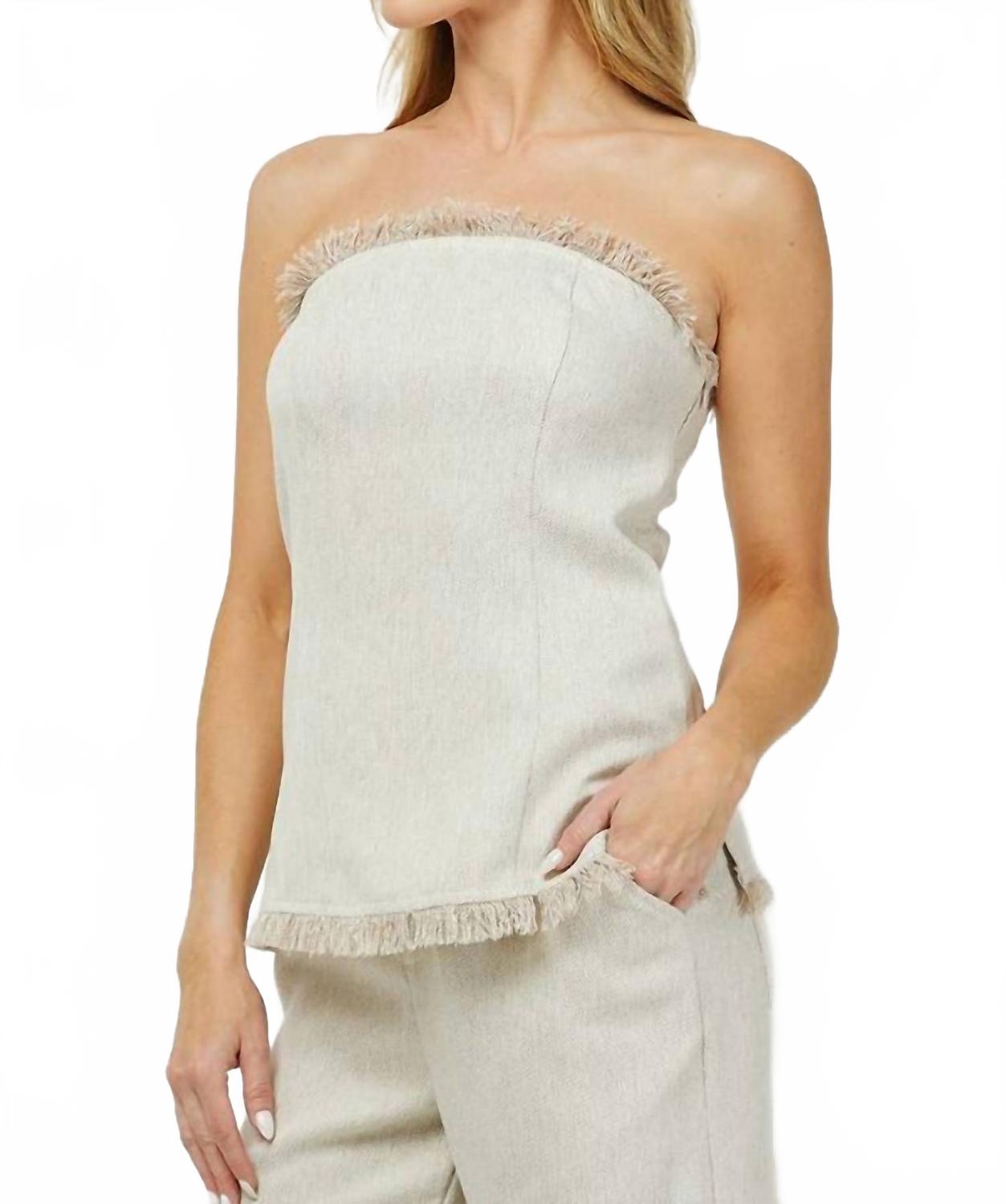 Представляем топ-трубу Oatmeal от NEEDII - шикарное изделие, идеально подходящее для летних случаев. Этот крой без бретелек подчеркивает бахрому на подоле в стиле преппи и застегивается на потайную молнию сбоку. Этот текстурированный топ из 100% полиэстера с бахромой выглядит классически. Сделано в Китае, легко ухаживать, следуя инструкциям по стирке в стиральной машине. Этот укороченный топ, вдохновленный Y2K, идеально подходит для новогоднего ужина и добавит стильную изюминку в ваш гардероб.