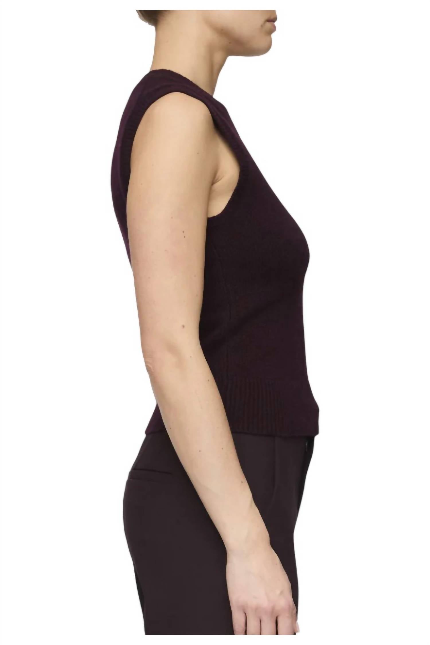 Идеальный свитер, искусно созданный для идеального сочетания тепла и стиля. Классический дизайн и мягкая ткань делают его незаменимым дополнением к вашему гардеробу. Безрукавка Ian от ALC - роскошное дополнение к вашему гардеробу, идеально подходящее как для многослойной одежды, так и для самостоятельного ношения. Этот топ из 100% кашемира насыщенного темно-сливового оттенка имеет приталенный силуэт, ребристую отделку и классический круглый вырез. Он легко надевается благодаря застежке-липучке и гарантированно высокого качества. Уход: только химчистка.