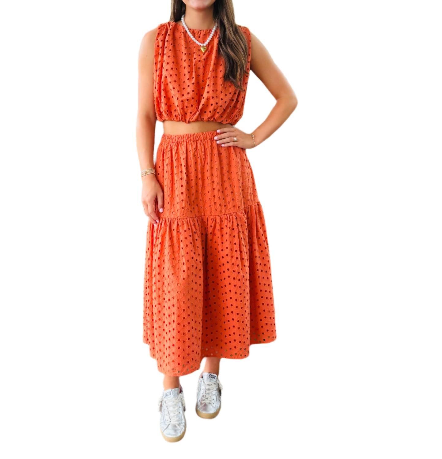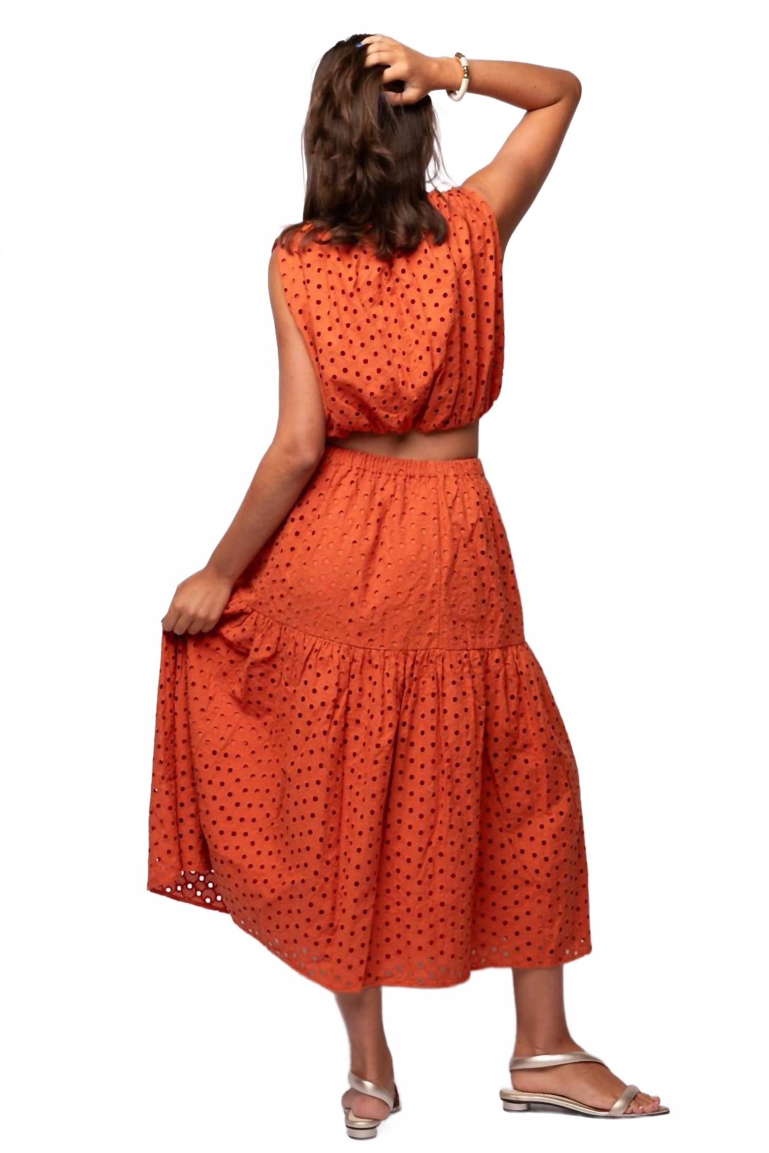 Украсьте свой летний гардероб топом ASTR Nalley Eyelet в насыщенном ржавом оттенке. Этот укороченный топ без рукавов с очаровательным вырезом-лодочкой и слегка присборенным на резинке краем создаст непринужденный, но в то же время шикарный образ в стиле бохо-шик. Топ изготовлен из 100% хлопка с подкладкой из 100% вискозы, имеет небольшой вырез-капельку на спине и застежку на пуговицы для удобства и стильного ношения. Уход за этой фактурной вещью возможен только в химчистке.
