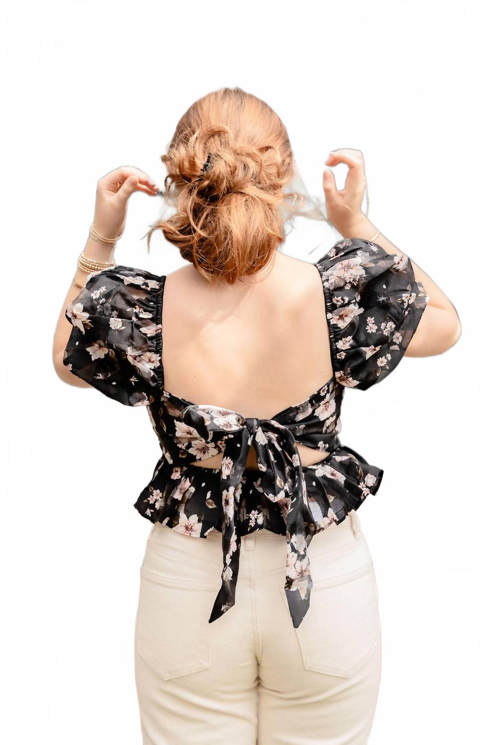 Дополните этот топ любимыми джинсами и шлепанцами для следующего девичника. Раскройте в себе модницу с топом-бюстье Chloe от BuddyLove, который идеально дополнит ваш летний гардероб для вечеринки. Этот очаровательный топ выполнен из 100% полиэстера (как из основной ткани, так и из подкладки), с короткими рукавами-фонариками и привлекательной эластичной спинкой. Слегка укороченная длина в сочетании с завязкой делает его стильным предметом гардероба для любого случая. Оцените его цветочный узор в черном цвете и наслаждайтесь комплиментами!