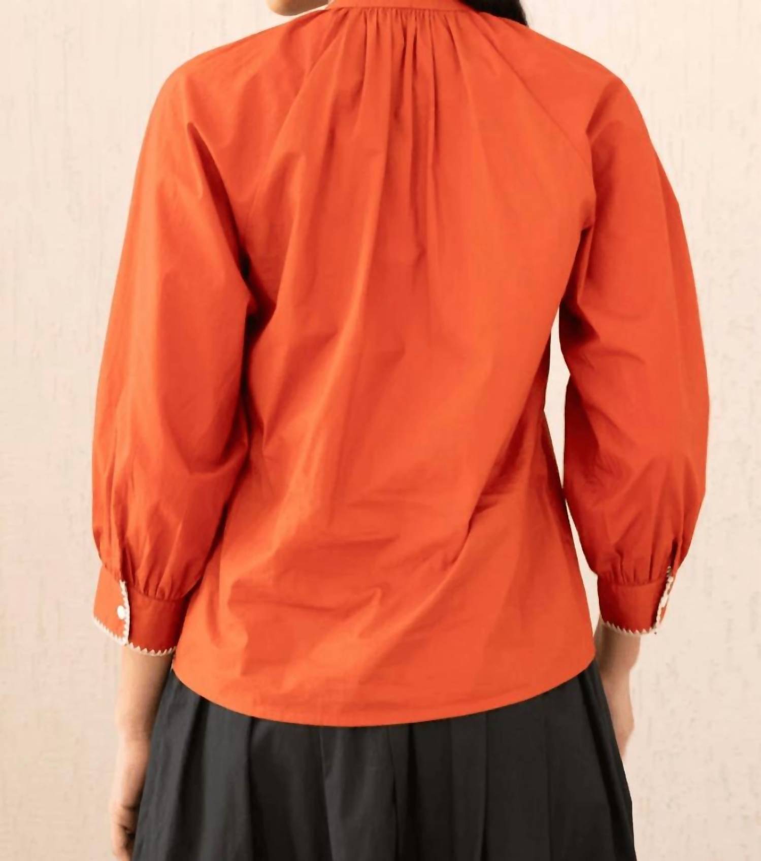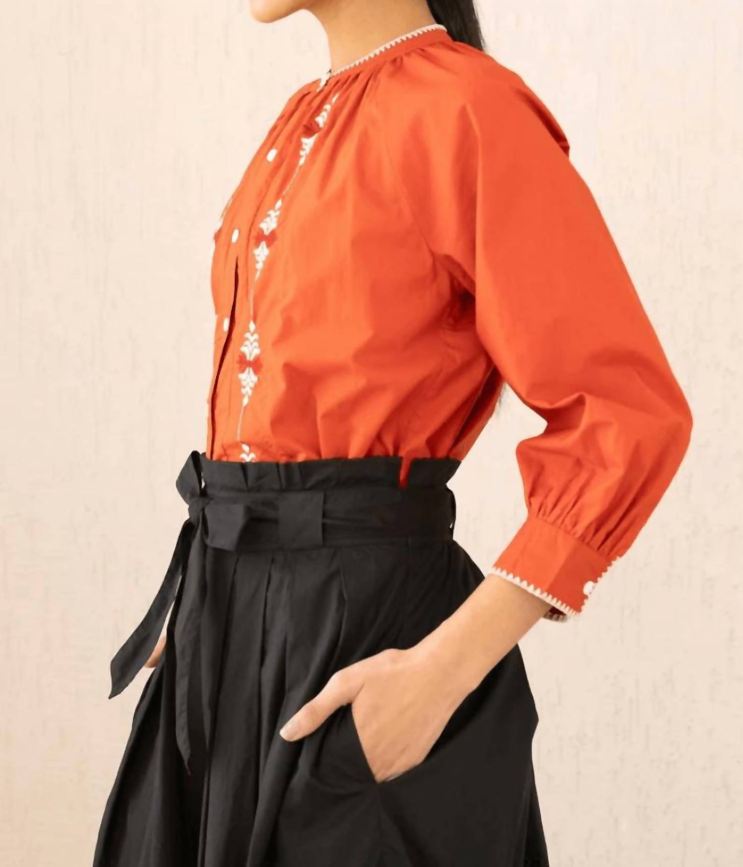 Сочетайте его с любимыми джинсами и шлепанцами для следующего девичника. Представляем топ Leonie Crewneck от BANJANAN - изысканную модель теплого цвета ройбуш, вдохновленную австрийским народным искусством. Эта блузка с длинными рукавами, изысканной вышивкой и мягкими сборками идеально садится по фигуре. Топ, изготовленный из 100% хлопкового поплина и произведенный в Индии, сочетает в себе стиль и комфорт благодаря удобной застежке на пуговицы. Уход прост: машинная стирка в холодной воде и сушка на веревке.