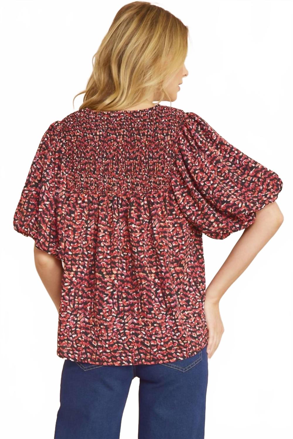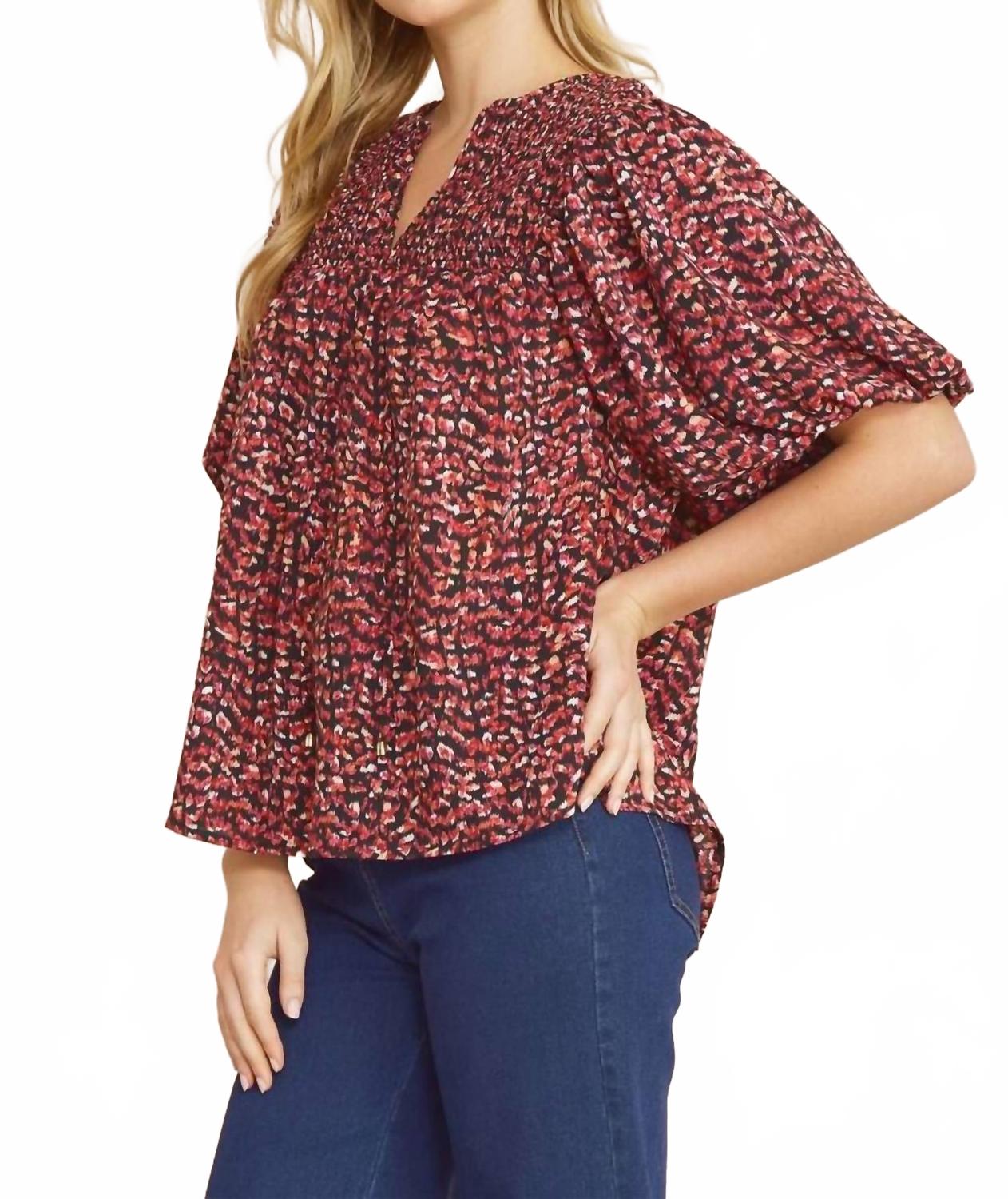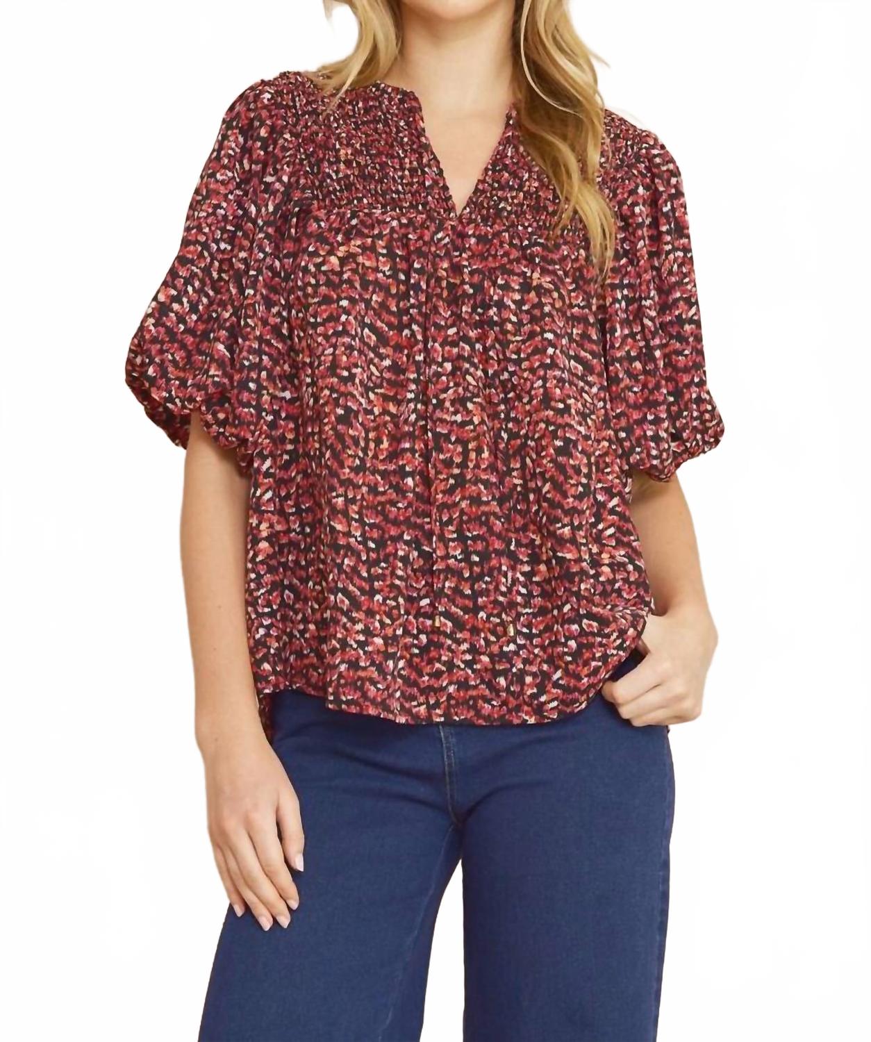 Универсальная блузка, которая подойдет как для работы, так и для ужина! Дополните свой вечерний образ топом Print Bubble Top от Entro изысканного сливового оттенка. Эта блузка с V-образным вырезом, короткими рукавами-фонариками и завязкой спереди создает особый шик. Блузка на подкладке изготовлена ​​из 100% полиэстера, сочетая в себе стиль и комфорт. Благодаря удобной застежке-липучке, топ требует ручной стирки и лучше сушить на веревке, чтобы сохранить свой внешний вид.