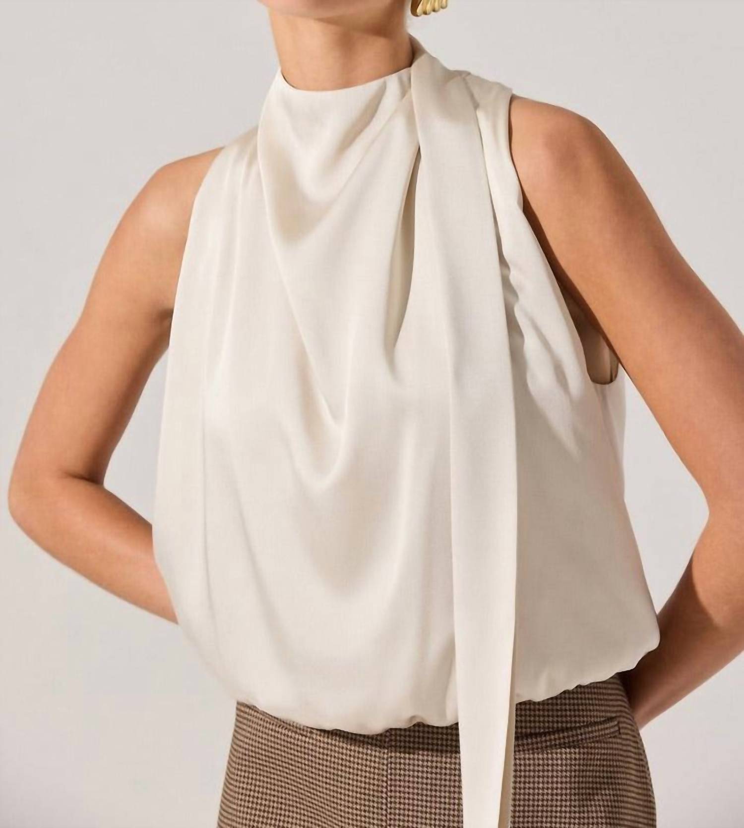 Блузка, которая никогда не выйдет из моды. Дополните свой гардероб топом без рукавов Joleisa от ASTR, который идеально подходит как для деловых встреч, так и для элегантных вечерних мероприятий. Этот белый атласный топ с гладким воротником и регулируемым завязывающимся шарфом дополнен вырезом-капелькой сзади с застежкой на пуговицу и петлю. Состав: 100% полиэстер, подкладка: 100% полиэстер, эластичный подол обеспечивает гладкую посадку. Уход: только химчистка.