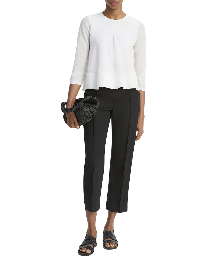 Украсьте свой повседневный гардероб топом Vince A-Line с круглым вырезом. Этот элегантный топ изготовлен из смеси 84% органического хлопка и 16% переработанного полиамида, что делает его экологичным и стильным выбором. А-образный силуэт добавляет современный штрих этому классическому топу с круглым вырезом, а яркий белый цвет обеспечивает универсальность. Этот топ, изготовленный в Италии с тщательным вниманием к деталям, одновременно роскошен и экологичен. Проникнитесь непринужденным и стильным стилем Vince и украсьте свой образ этой вневременной вещью.